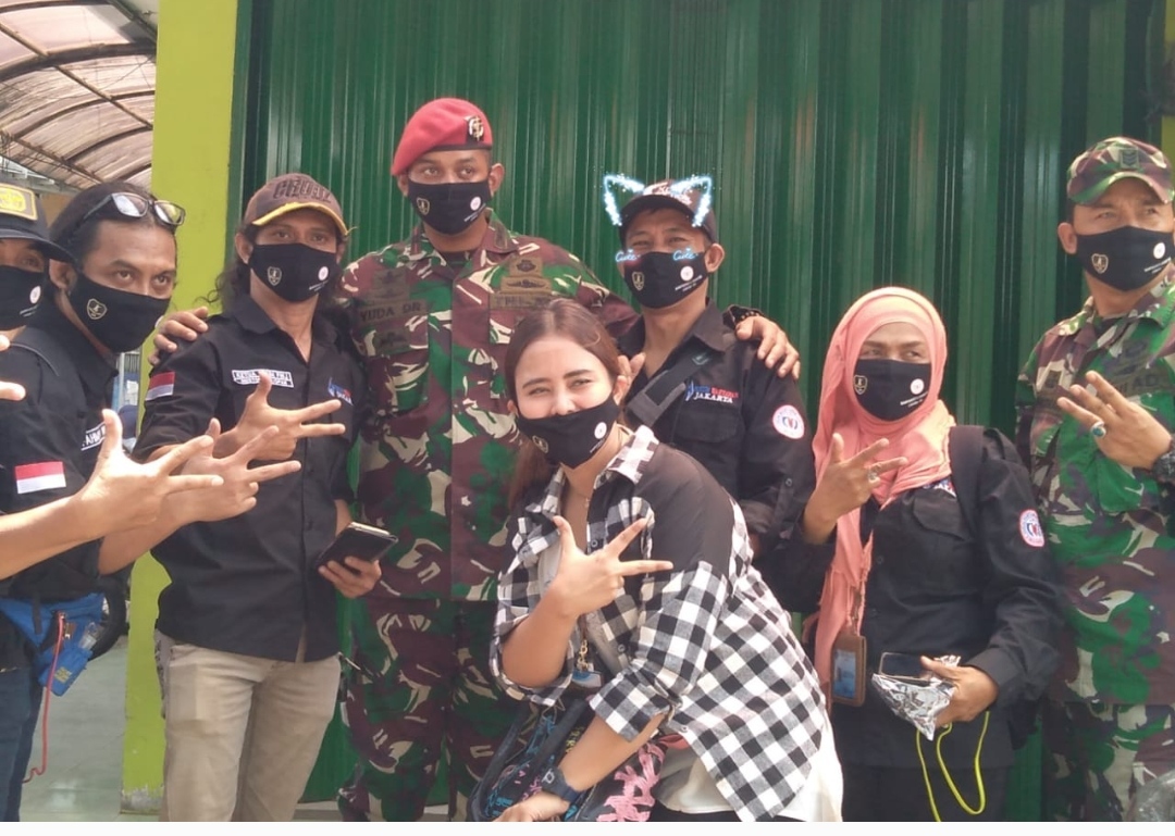 JAKARTA, MEDIATRANSPARANCY.COM – Forum Wartawan Jakarta (FWJ) bersama Batalyon 33 Group 3 Kopassus TNI AD dalam kegiatan bersama membagikan seribuan masker kepada para pengguna jalan di perempatan lampu pengatur lalu lintas, serta wilayah pembinaan terkait ‘PERANG’ dalam rangka upaya memutus Mata Rantai serta cegah penyebaran wabah Penyakit Virus Corona atau Corona Virus Disease (COVID-19) dalam kegiatan yang digelar di dua lokasi berbeda, yakni Perempatan Graha Cijantung, Ciracas dan daerah Kalisari Jakarta Timur.