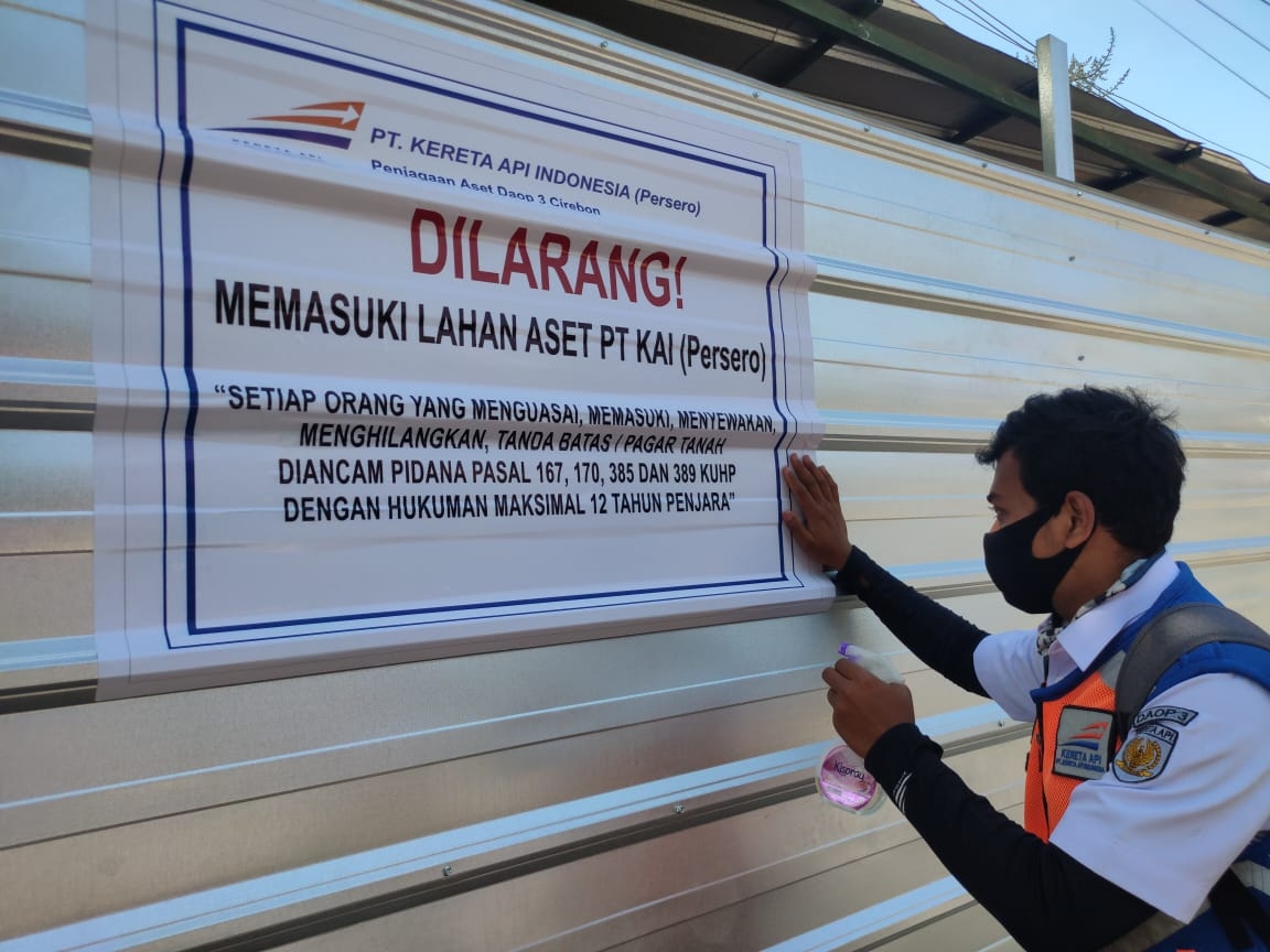 Hal tersebut sesuai dengan surat edaran dari Menteri BUMN Nomor SE-09/MBU/2009 perihal Penertiban Aset Tanah dan Bangunan, serta surat dari Komisi Pemberantasan Korupsi Nomor R.4002/10-12/09/2014 tanggal 16 September 2014 perihal Tindak Lanjut Penertiban Barang Milik Negara (BMN) di lingkungan PT Kereta Api Indonesia (Persero), demikian rilis yang diterima mediatransparancy.com dari Humas KAI Daop 3 Cirebon.