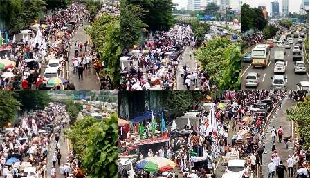 Aksi massa sudah memenuhi 3 lajur jalan. Kini arus lalu lintas dari arah Senayan menuju Slipi hanya tersedia satu lajur, yakni lajur TransJakarta. Jalur Trans Jakarta terpantau padat karena massa juga memenuhi lajur tersebut. Kendaraan yang lewat hanya bisa merayap pelan-pelan untuk melintasi depan gedung parlemen ini.