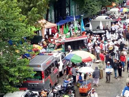 JAKARTA, MEDIATRANSPARANCY.COM – Aksi 212 jilid II berlangsung di depan gedung DPR/MPR. Kerumunan massa yang menyita perhatian pengendara membuat lalu lintas di sekitar lokasi mulai macet. Pantauan wartwan mediatransparancy.com, arus lalu lintas di depan gerbang Kompleks Parlemen, Jalan Jenderal Gatot Subroto, Jakarta, mulai macet sejak pukul 10.00 WIB, Selasa (21/2/2017). Lalu lintas menuju Slipi tersendat.