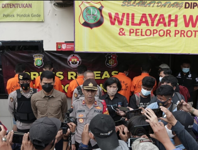“Kita telah mengamankan ke lima pelaku yang merupakan petugas keamanan (Security) kafe, yang kesal dengan korban karena tidak menghiraukan himbauan petugas keamanan saat korban melakukan selebrasi dengan menaiki sound sistem saat acara berlangsung,” ujar Kapolsek Pondokgede Kompol. Jimmy Marthin saat konferensi pers yang digelar bertempat dihalaman Mapolsek Pondokgede pada, Kamis (17/12/2020) siang.