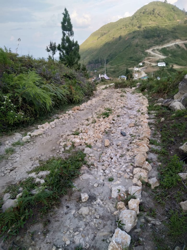 “Sudah beberapa kali warga terjatuh akibat kondisi jalan yang hanya ditabur bebatuan seperti itu,” bebernya.