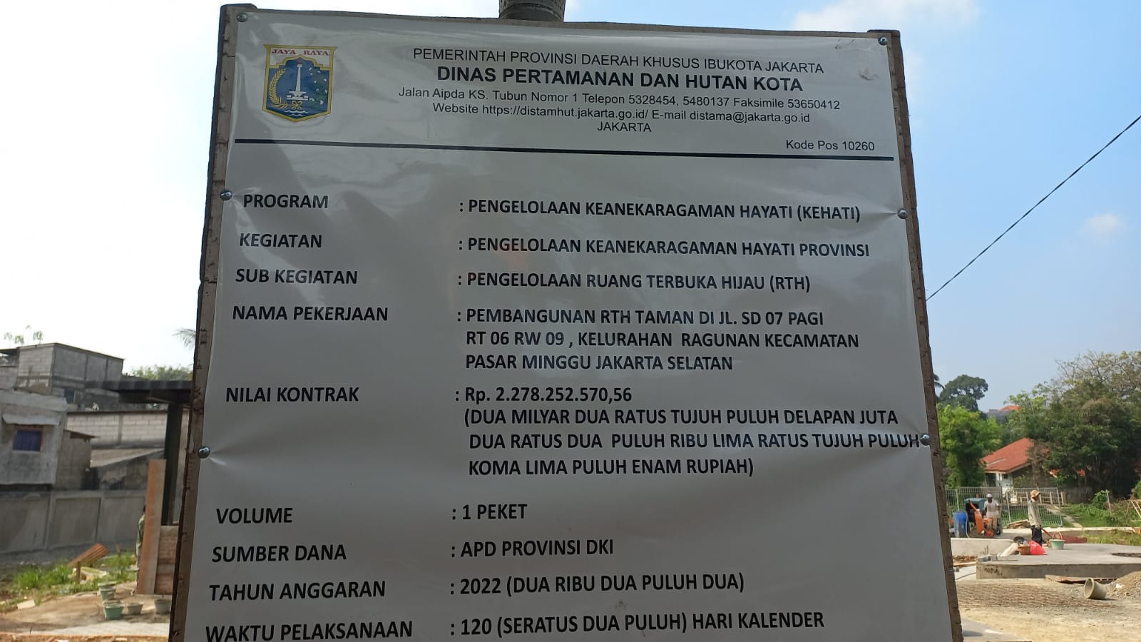 JAKARTA, mediatransparancy.com – Pelaksanaan pembangunan Ruang Terbuka Hijau (RTH) Taman milik Dinas Kehutanan dan Taman Kota DKI Jalan SD 07 Pagi, Kelurahan Ragunan, Kecamatan Pasar Minggu, Kota Administrasi Jakarta Selatan terus menuai sorotan.