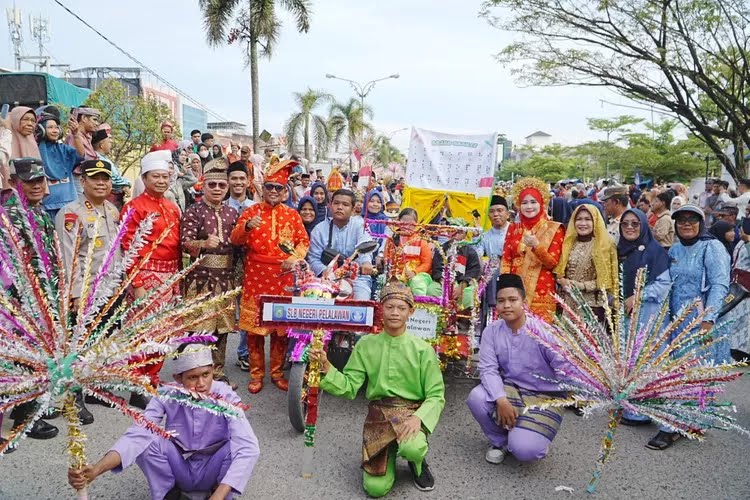 – Dalam rangka meriahkan Hari Ulang Tahun Kabupaten Pelalawan yang ke-26 tahun 2025, Bupati Pelalawan H. Zukri bersama Wakil Bupati Pelalawan Husni Thamrin secara resmi melepas Pawai Budaya yang dilaksanakan di Pangkalan Kerinci, Rabu (8/10/2025).