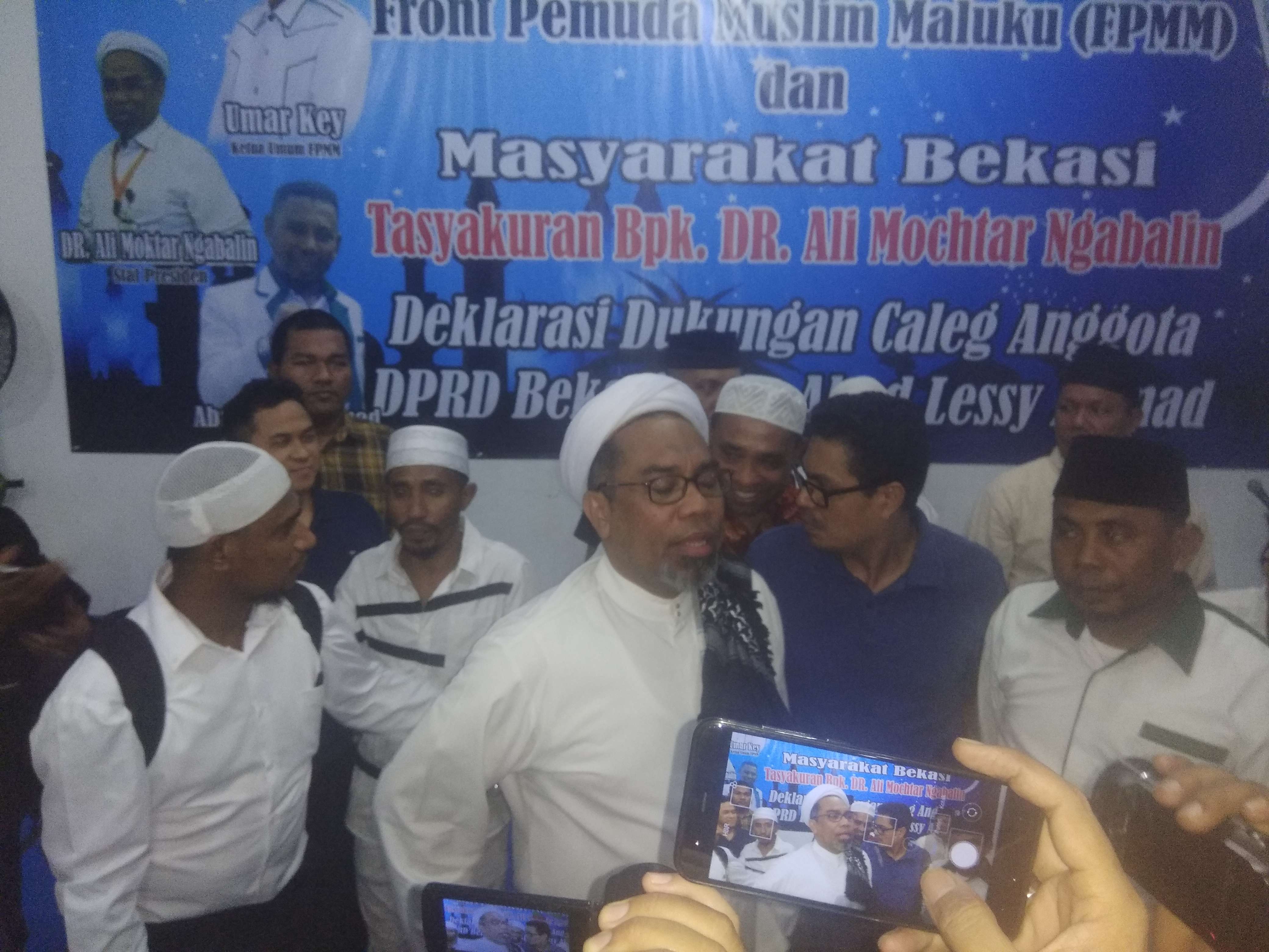 KOTA BEKASI, MEDIATRANSPARANCY.COM – Front Pemuda Muslim Maluku (FPMM) pimpinan Umar Key selaku ketua umum, mengadakan buka puasa bersama dengan masyarakat Bekasi dan tasyakuran DR. Ali Mochtar Ngabalin, Juru Bicara Kantor Staf Presiden (KSP). Sekaligus dirangkai deklarasi dukungan kepada Abad Lessy Ahmad sebagai Caleg anggota DPRD Kota Bekasi.
