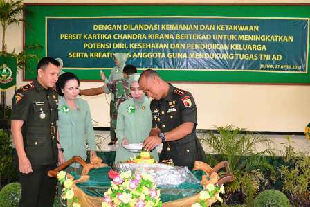 BLITAR, MEDIATRANSPARANCY.COM – Momen Hari Ulang Tahun (HUT) Persit Kartika Chandra Kirana ke-72 dimanfaatkan oleh Persit KCK Cabang XXIV Yonif 511 Koorcab Rem 081 PD V/Brawijaya menggelar syukuran di Aula Graha Bhakti Yonif 511/DY Jalan Maluku Kota Blitar, Jawa Timur, Jumat (27/4/2018).