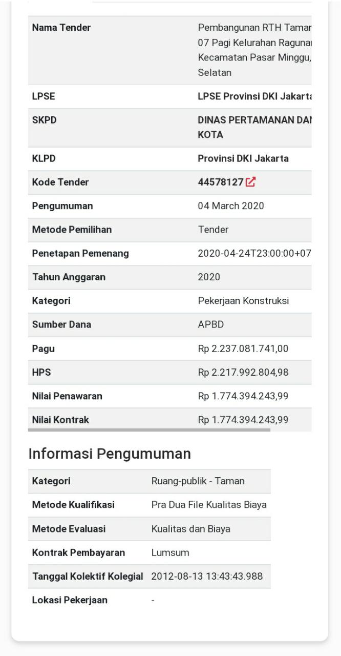 “Bagaimana mungkin ada proyek pemerintah yang dikerjakan baru sekitar 10 persen tapi kontraknya sudah berakhir, tapi fakta itu ada. Proyek RTH Dinas Kehutanan DKI di Jaksel,” ungkapnya.