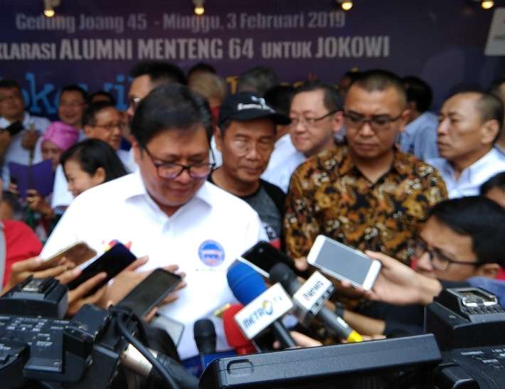 Airlangga Hartarto yang merupakan Alumni senior Kolese Kanisius saat menjawab pertanyaan awak media usai deklarasi dukungan terhadap Jokowi – Amin yang diselenggarakan digedung Juang 45, Jalan Menteng Raya Nomor 31, Menteng Jakarta Pusat pada, Minggu (3/2).dok-istimewa