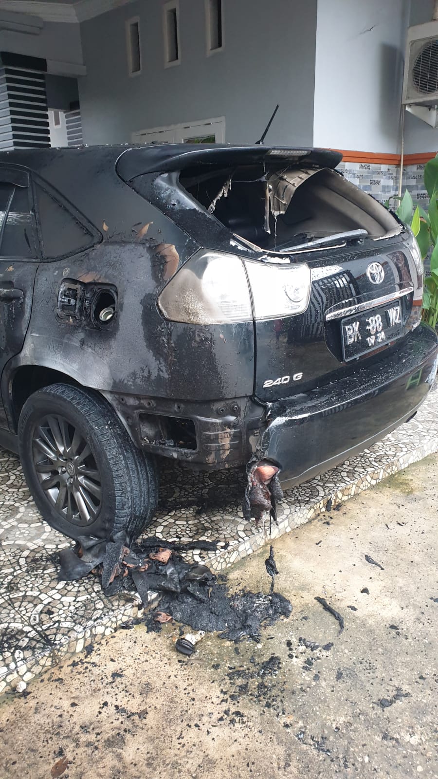 “Saat itu saya mau sholat subuh mencium bau hangus dan setelah sholat saya bergegas keluar rumah dan mendapati api sudah membakar bagian belakang mobil,” katanya.