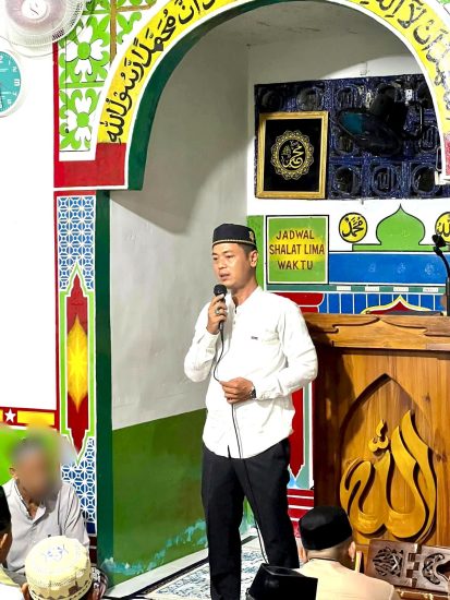 Kepala Rumah Tahanan Negara (Karutan) Kelas IIB Tapaktuan, Kanwil Ditjenpas Aceh, Muhamad Sukron, AM.d. IP. S.Sos. MH, Saat Menyampaikan Ceramah Pada Malam Pertama Sholat Tarawih di Bulan Suci Ramadhan 1447 H Yang Penuh Berkah di Masjid At-Taubah, Rabu, 18 Februari 2026 (Malam). Fhoto : Transparansi Aceh.