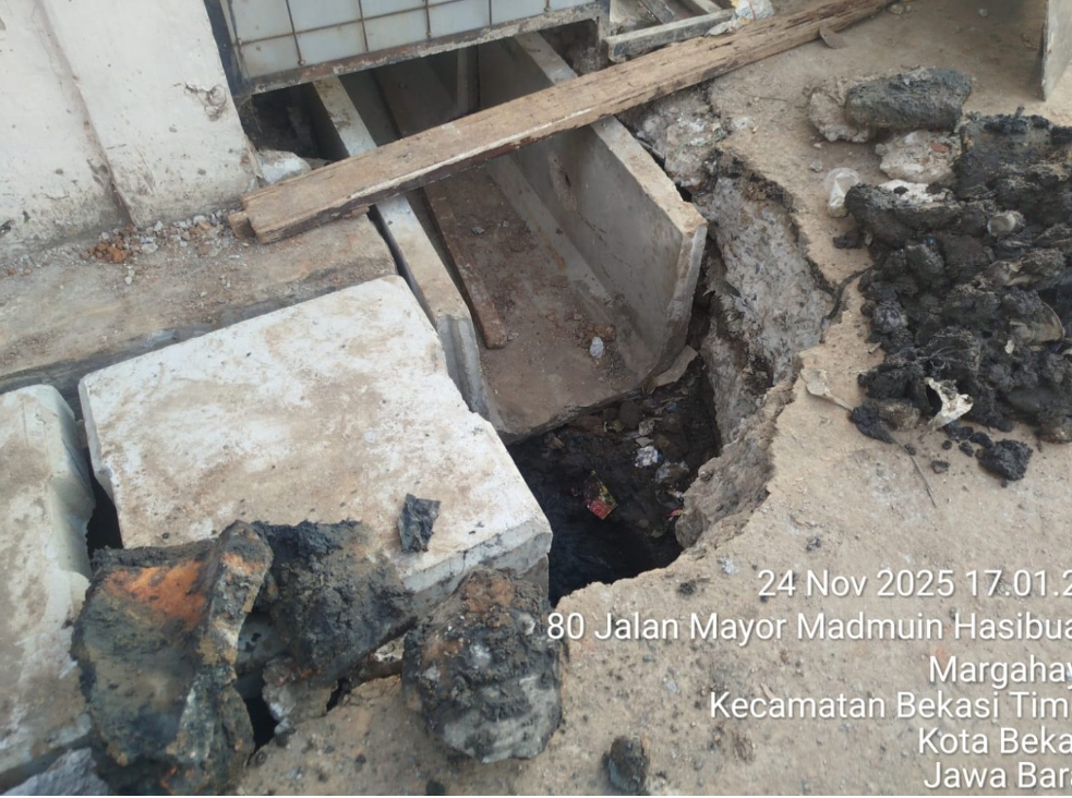 Selanjutnya ada pekerjaan saluran di Jalan RA Kartini, Kelurahan Margahayu, Kecamatan Bekasi Timur, tepatnya di wilayah RT 03.