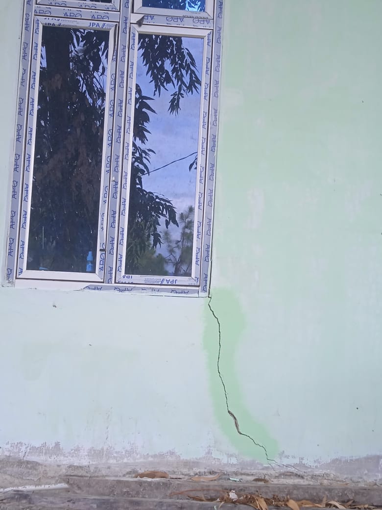 Gedung tersebut mengalami retak dimana-mana. Tidak hanya dinding, kerusakan parah juga terjadi pada lantai gedung.