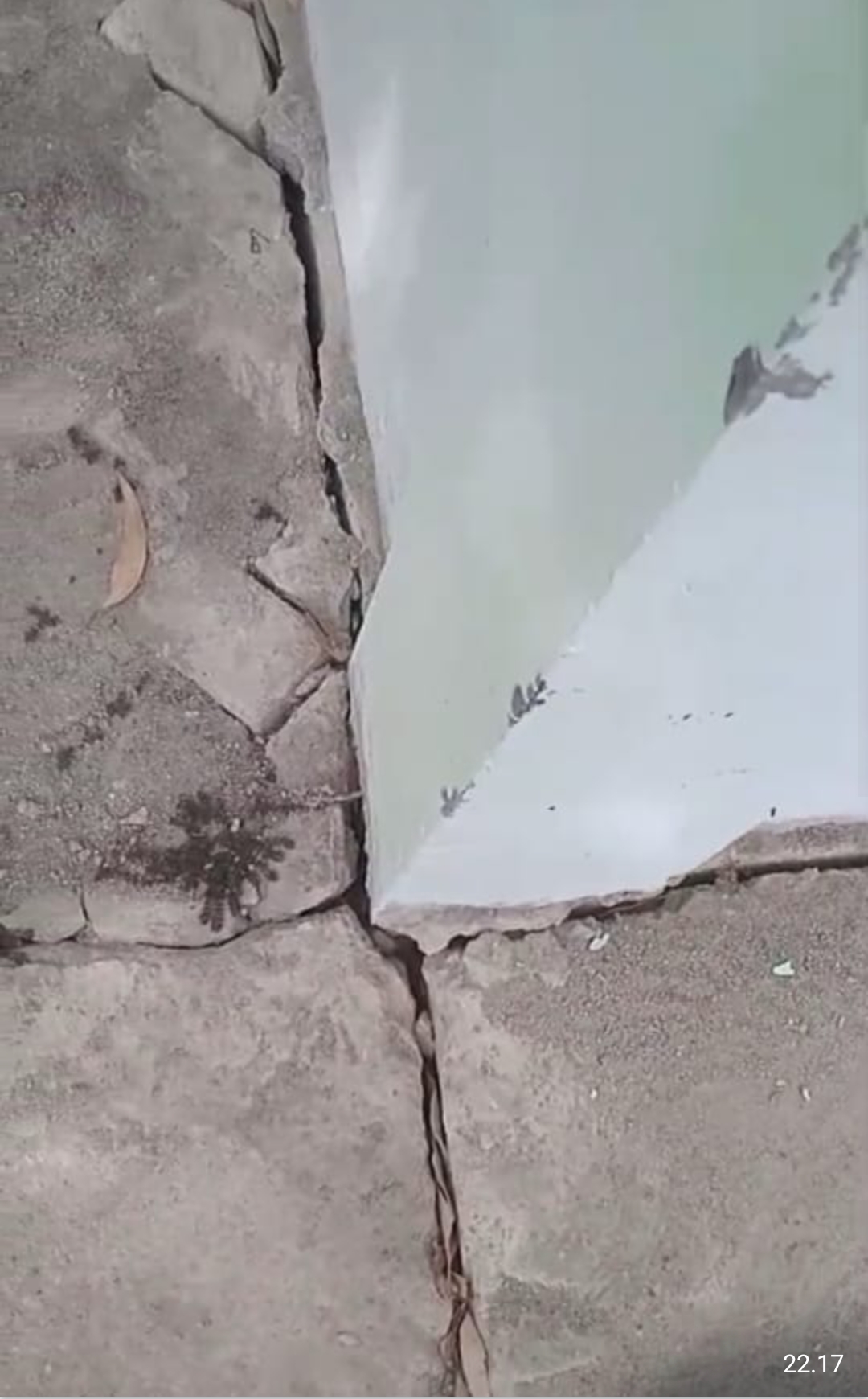 Kuat dugaan, terjadinya keretakan pada bangunan tersebut akibat mutu bangunan pada saat pelaksanaan pbangunan tidak sesuai spek yang telah ditentukan.