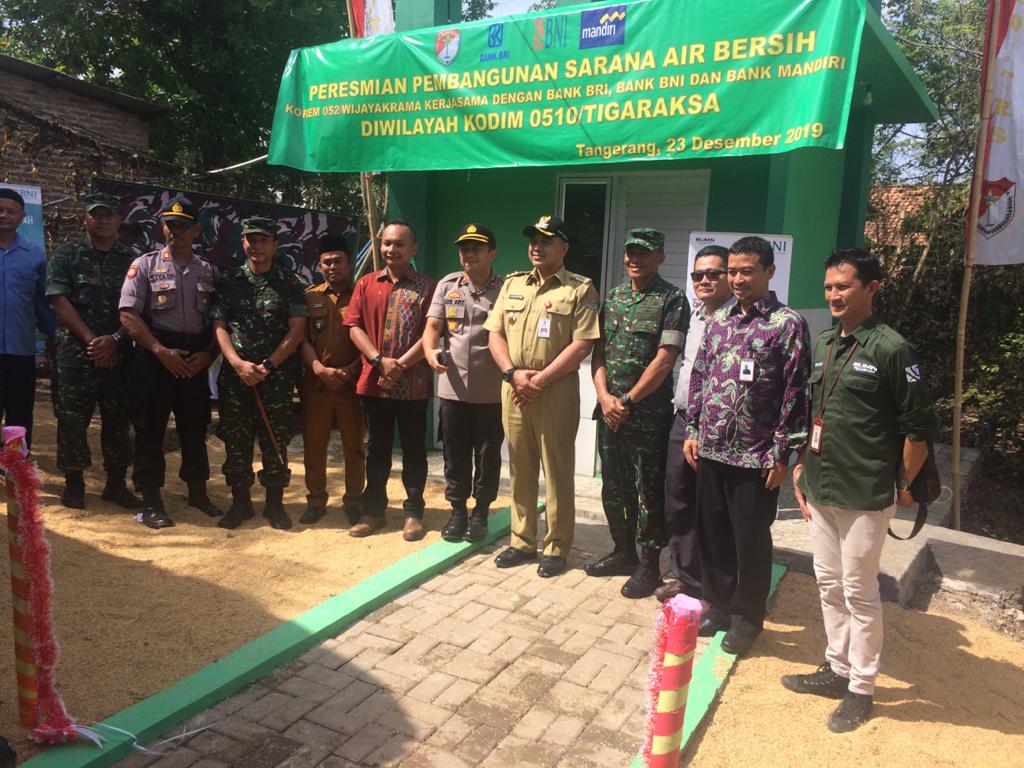 TANGERANG, MEDIA TRANSPARANCY – Bertempat di Kampung Blukbuk Luwung RT 003/04 Desa Blukbuk Kec. Kronjo Kab. Tangerang, telah dilaksanakan peresmian pembangunan sarana air bersih Korem 052/Wkr untuk warga sekitar wilayah tersebut yang bekerjasama dengan mitra kerja di wilayah antara lain Bank BNI 46, Bank BRI, Bank Mandiri.