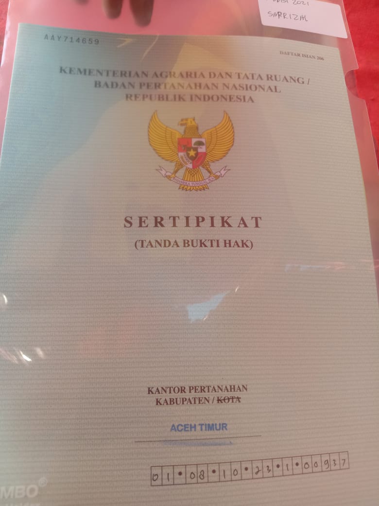 BPN Aceh Timur Sah Kan 400 Hektar Lahan Pertanian Disertifikasi