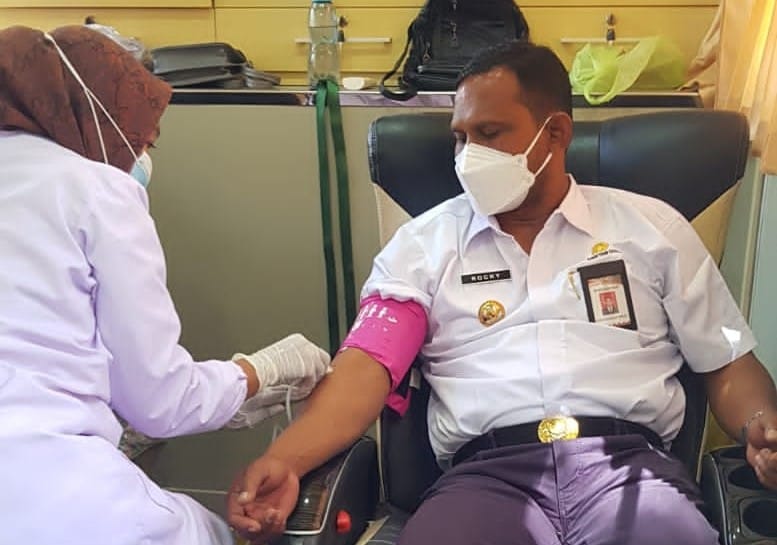 Dalam kegiatan yang berlangsung pada Selasa (12/10/2021) di halaman kantor Dinsos Aceh Timur ini Bupati Rocky sapaan akrab H Hasballah ikut mendonorkan darahnya pada kegiatan itu.