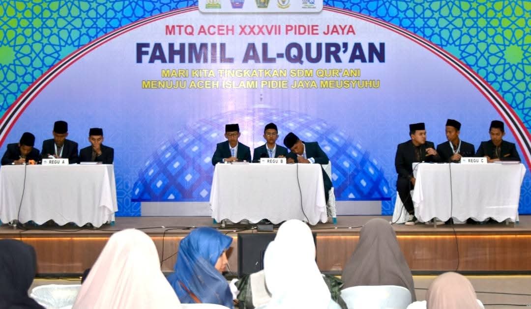KOTA LANGSA TRANSPARANSI – Pelaksanaan Musabaqah Tilawatil Quran atau MTQ Aceh XXXVII di Kabupaten Pidie Jaya merupakan hari ketiga terus berlangsung, Senin, 3 November 2025. Dimana saat ini, untuk cabang Fahmil Quran atau cerdas cermat telah diikuti semua kafilah dari 23 kabupaten/kota di Aceh, di Aula Bappeda Kabupaten Pidie Jaya.