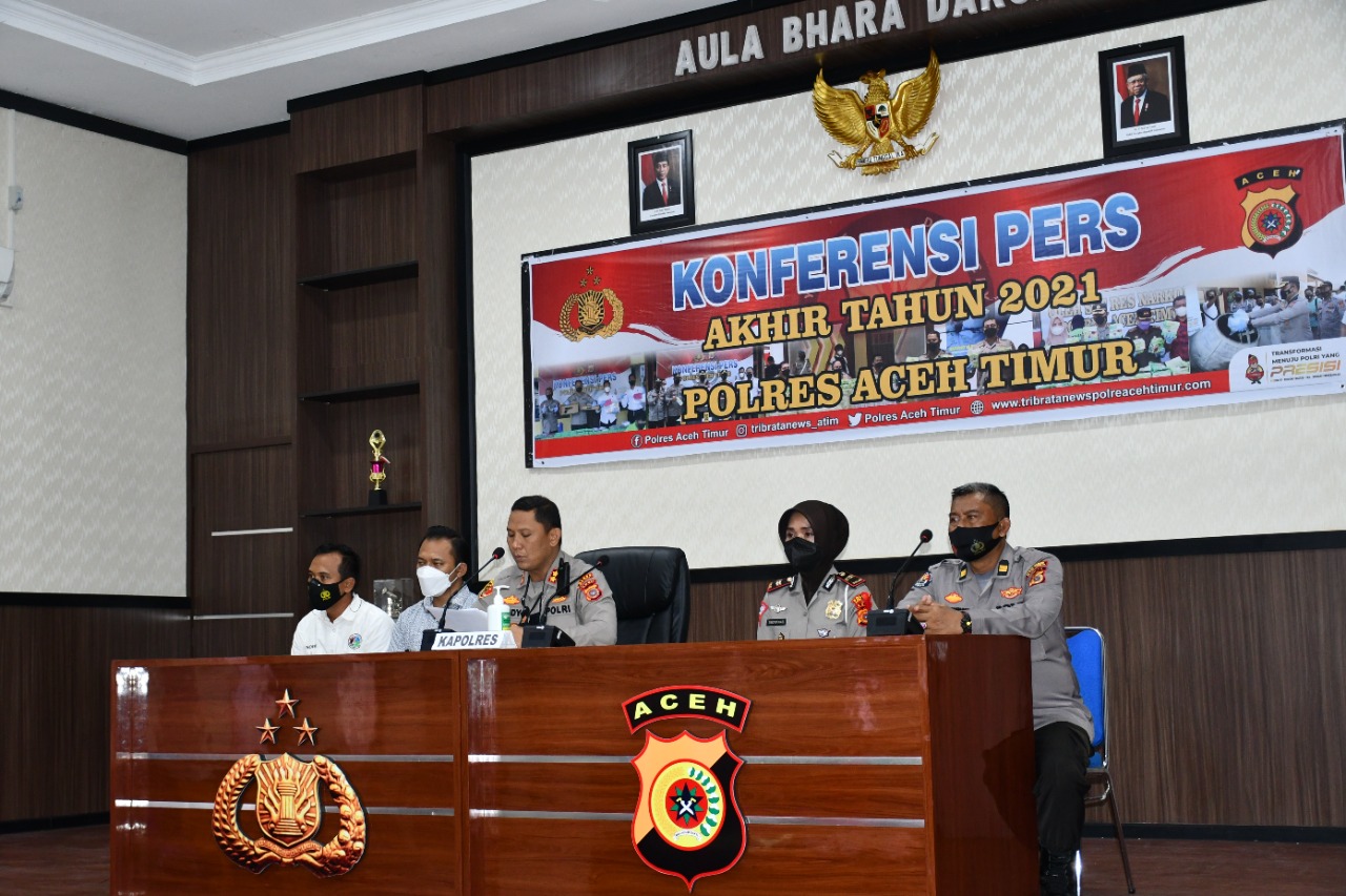 Aceh Timur, MEDIA TRANSPARANCY -Selama kurun waktu tahun 2021, wilayah hukum Polres Aceh Timur sangat kondusif. Di mana ini merupakan kerjasama antara Polres Aceh Timur dengan berbagai stake holder serta didukung oleh masyarakat dan awak media.