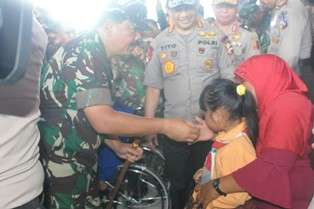 Usai melaksanakan Shalat Jumat, Panglima TNI beserta rombongan, kegiatan dilanjutkan meninjau Bhakti kesehatan TNI-Polri berupa bantuan kesehatan gigi terhadap pelajar, khitanan massal Anak-anak Sambas, pengobatan dan pemberian sembako untuk warga di ujung batas negeri itu. Juga penyerahan bantuan kursi roda bagi warga difabel.