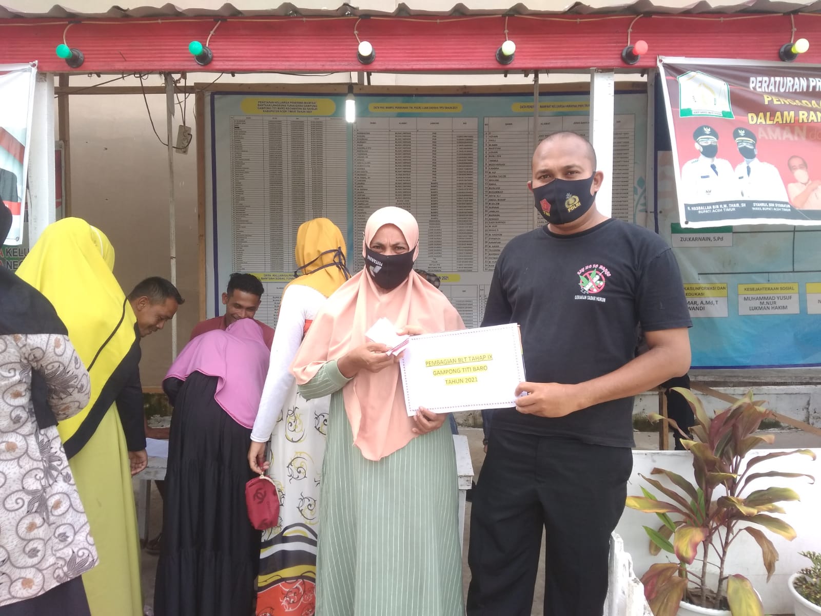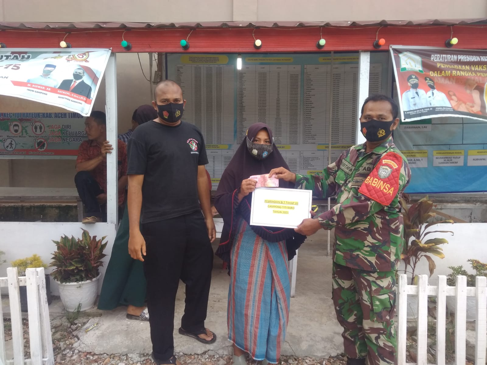 MEDIA TRANSPARANCY ACEH TIMUR –Penyaluran BLT DD (Bulan 7,8 dan 9) Cair, Pelaksanaan acara penyaluran bertempat di Kantor Desa Titi Baroe Kecamatan Idi Rayeuk Kabupaten Aceh Timur, Kamis (30/9/2021).