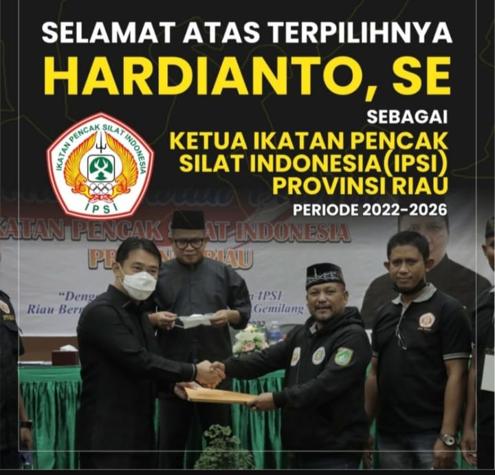 Dalam kata sambutan Hardianto menyampaikan berterima kasih atas kepercayaan para pecinta silat terhadap diri nya. “Kami ingin membuat IPSI Riau lebih baik kedepannya dan menargetkan Emas sebanyak banyak nya di PON 2024 mendatang yang akan diadakan di Sumut-Aceh. Kita adalah terbaik, dan ada yang lebih baik dari kita. Kita jangan puas dengan terbaik saja, tetapi harus yang lebih baik dari yang terbaik”, kata Hardianto yang juga Wakil Ketua DPRD Riau dengan semangat.