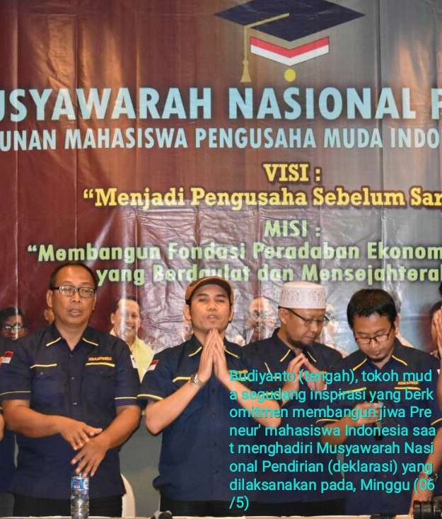 KAB.BEKASI, MEDIATRANSPARANCY.COM -Tokoh dan pengusaha muda penuh inspirasi Indonesia, Budiyanto bersama sejumlah mahasiswa dari berbagai daerah di pulau Jawa mendeklarasikan organisasi profesi kewirausahaan yang bernama Himpunan Mahasiswa Pengusaha Muda Indonesia (HIMAPINDO) sekaligus pengukuhan pengurus dalam musyawarah nasional yang digelar di de’lagoon Resto Lippo Cikarang, Kabupaten Bekasi pada, Minggu (06/05/18).