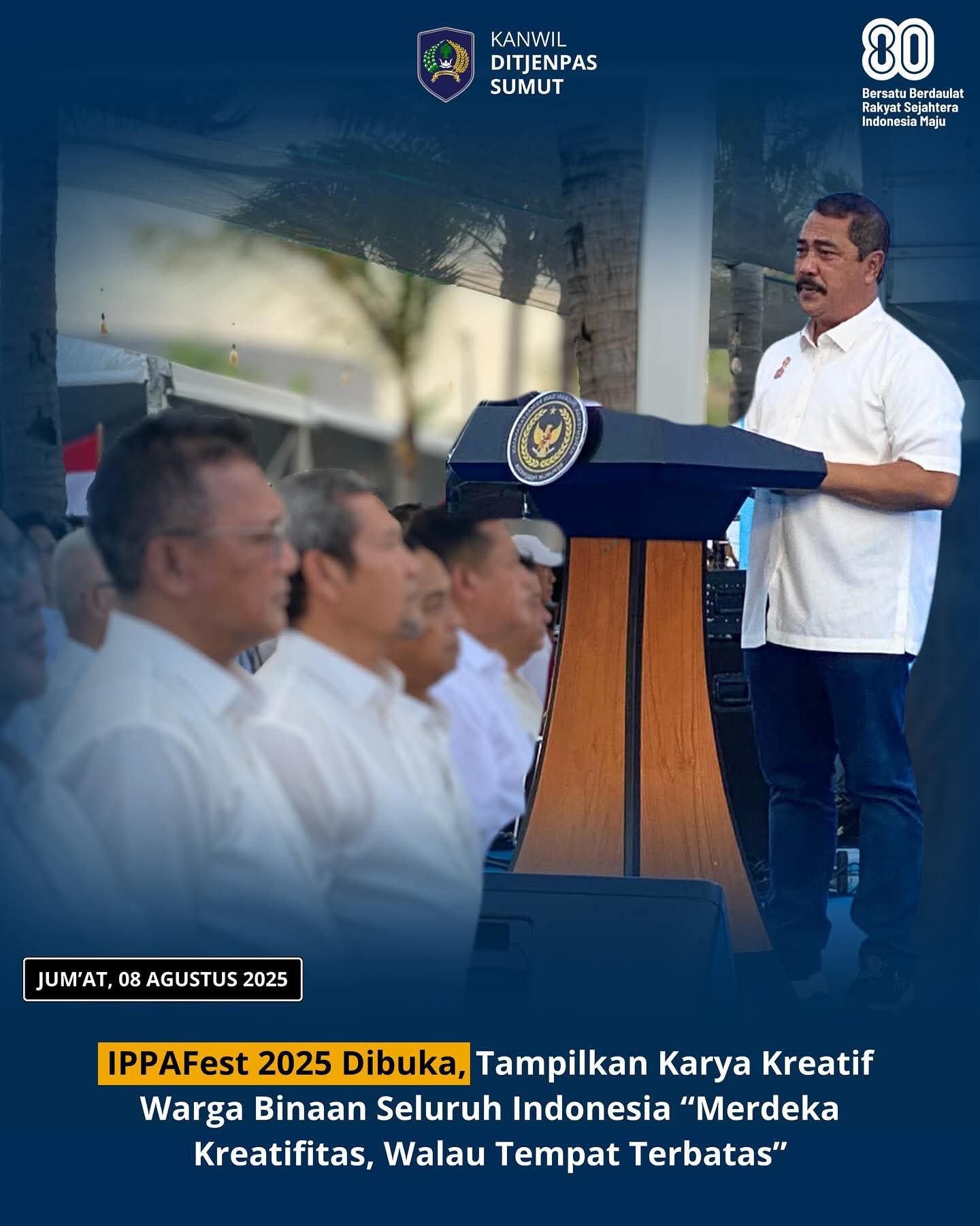 Kanwil Ditjenpas Sumatera Utara turut berpartisipasi dengan memamerkan berbagai karya unggulan warga binaan dari beberapa Lapas dan Rutan di wilayahnya, antara lain kerajinan tangan, ulos bernilai seni tinggi, dan produk kuliner khas Sumatera Utara. Kakanwil Yudi Suseno menyampaikan kebanggaannya atas kesempatan ini. “IPPAFest adalah ajang pembuktian bahwa hasil pembinaan kita mampu bersaing dan diterima oleh masyarakat luas. Harapannya, produk ini dapat membuka jalan pemasaran yang lebih luas bagi warga binaan setelah bebas nanti,” ujarnya.