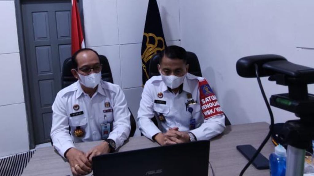 Kepala Kantor Wilayah Kemenkumham Aceh, Meurah Budiman didampingi Kepala Divisi Pelayanan Hukum dan HAM, Sasmita mengikuti rapat koordinasi pengawasan Inspektorat Jenderal Kementerian Hukum dan HAM Tahun 2021 secara virtual dari Rumah Tahanan Negara Kelas II B Tapaktuan Kabupaten Aceh Selatan.