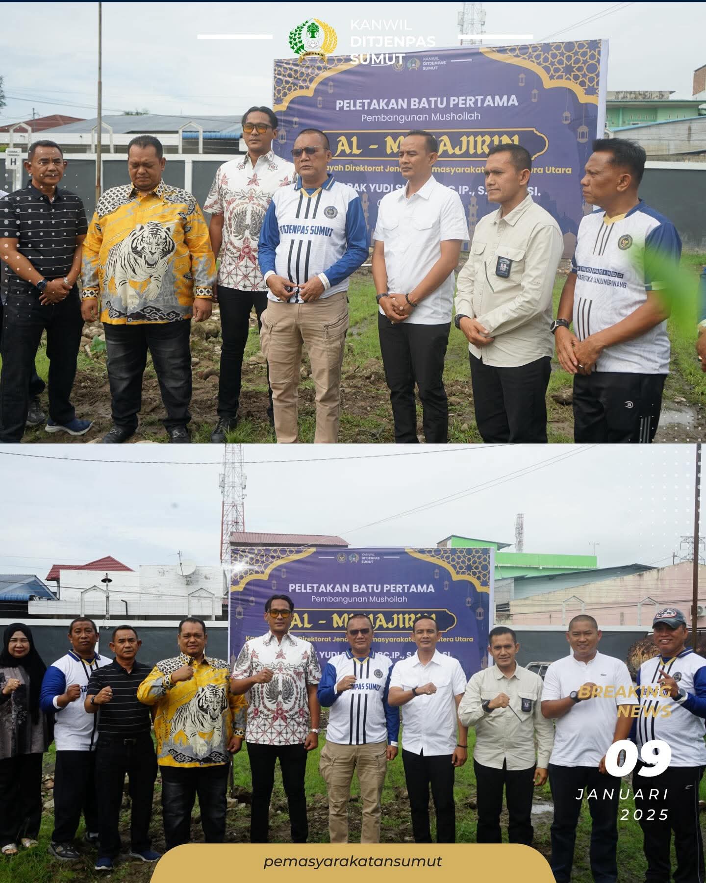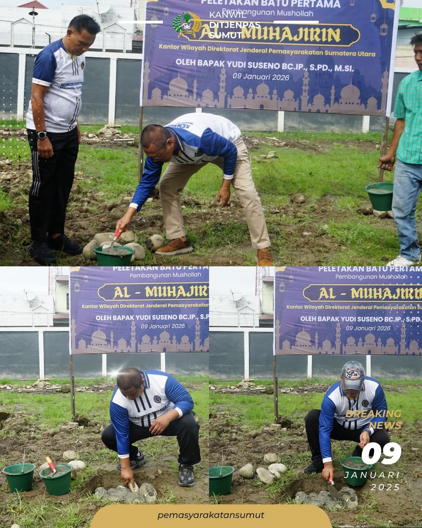 MEDAN, TRANSPARANSI – Kepala Kantor Wilayah Direktorat Jenderal Pemasyarakatan Sumatera Utara (Kakanwil Ditjenpas Sumut), Bapak Yudi Suseno, secara resmi melaksanakan peletakan batu pertama pembangunan Mushollah “Al-Muhajirin” pada Jumat 9 Januari 2026.