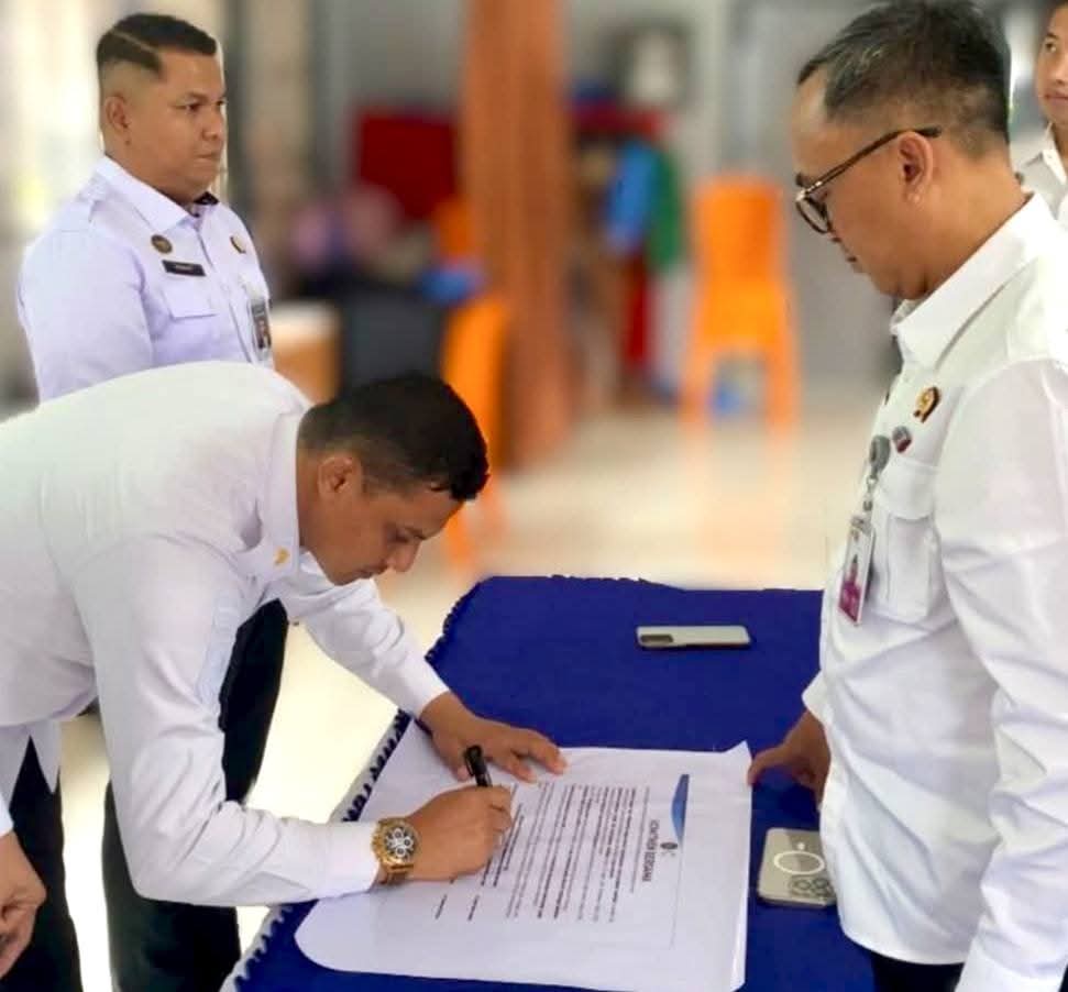 KOTA BAKTI Transparansi – Kepala Lapas Kelas IIB Kota Bakti, Ditjenpas Aceh, Benny Muhammad Saefuloh bersama jajaran pejabat struktural dan seluruh pegawai mengikuti zoom meeting penandatanganan komitmen bersama petugas pemasyarakatan dalam upaya memberantas narkoba, Handphone dan barang terlarang (Halinar) di seluruh satuan kerja pemasyarakatan se-Indonesia, Senin, 20 Oktober 2025.