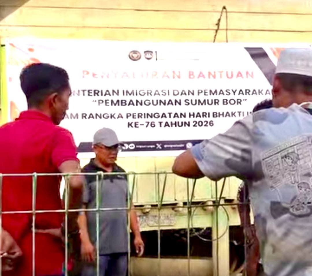 “Dalam rangka Hari Bakti Imigrasi Ke-76 Tahun 2026, Kanim Kelas II TPI Langsa melaksanakan penyaluran bantuan sosial dari Kementerian Imigrasi dan Pemasyarakatan (Kemenimipas) berupa pembangunan Sumur Bor ke daerah yang terdampak banjir bandang di Kabupaten Aceh Tamiang, yang pada hari minggu lalu Tim melakukan pemantauan terhadap pembangunan sumur bor yang sedang mengerjakan bakti sosial tersebut yang berlokasi di Kota Lintang Kecamatan Kota Kuala Simpang, Kabupaten Aceh Tamiang,”