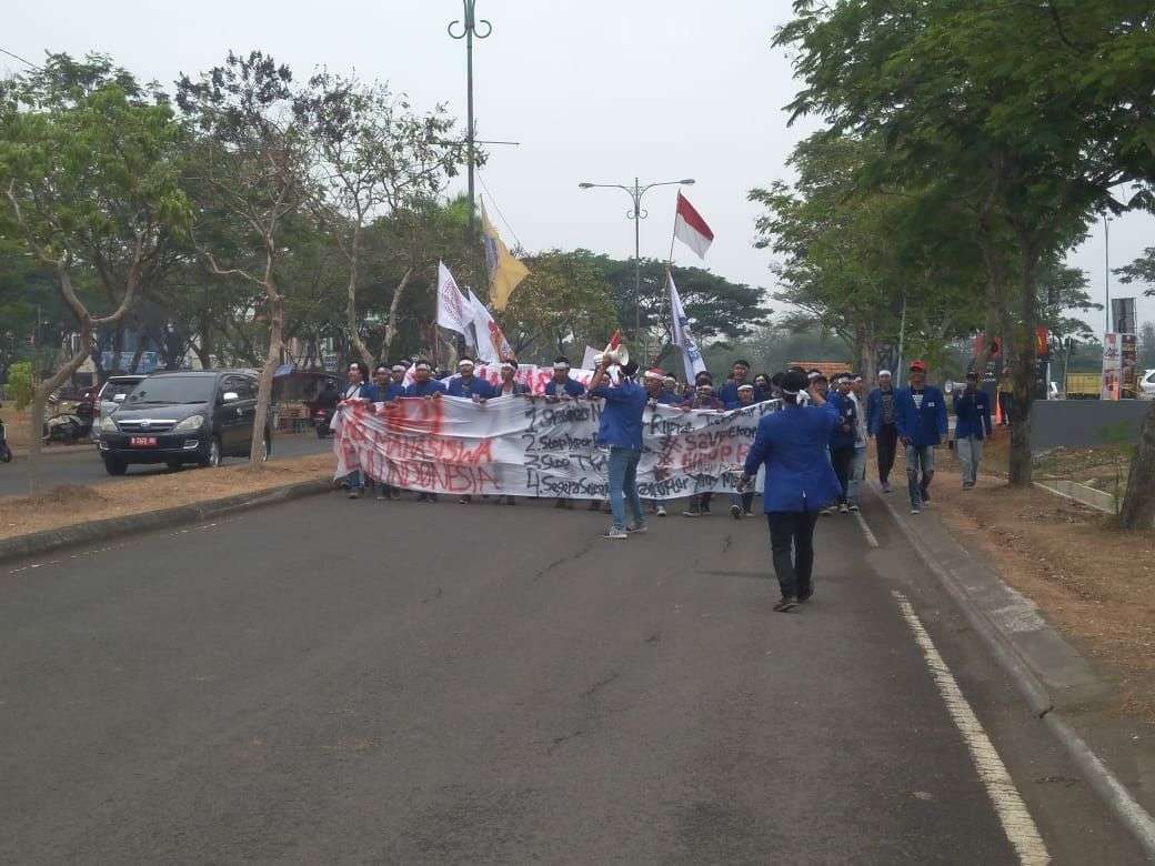 Ketua Badan Eksekutif Mahasiswa (BEM) Pelita Bangsa, Jaelani Nurseha selaku Koordinator Lapangan (Korlap) aksi, saat menyampaikan tuntutan yakni ; Stabilitas nilai tukar rupiah terhadap dollar AS, hentikan impor bahan pokok, stop Tenaga Kerja Asing (TKA) serta segera selesaikan infrastruktur yang ‘mangkrak’ di Kabupaten Bekasi dalam aksi unjuk rasa pada, Jum’at (21/9).