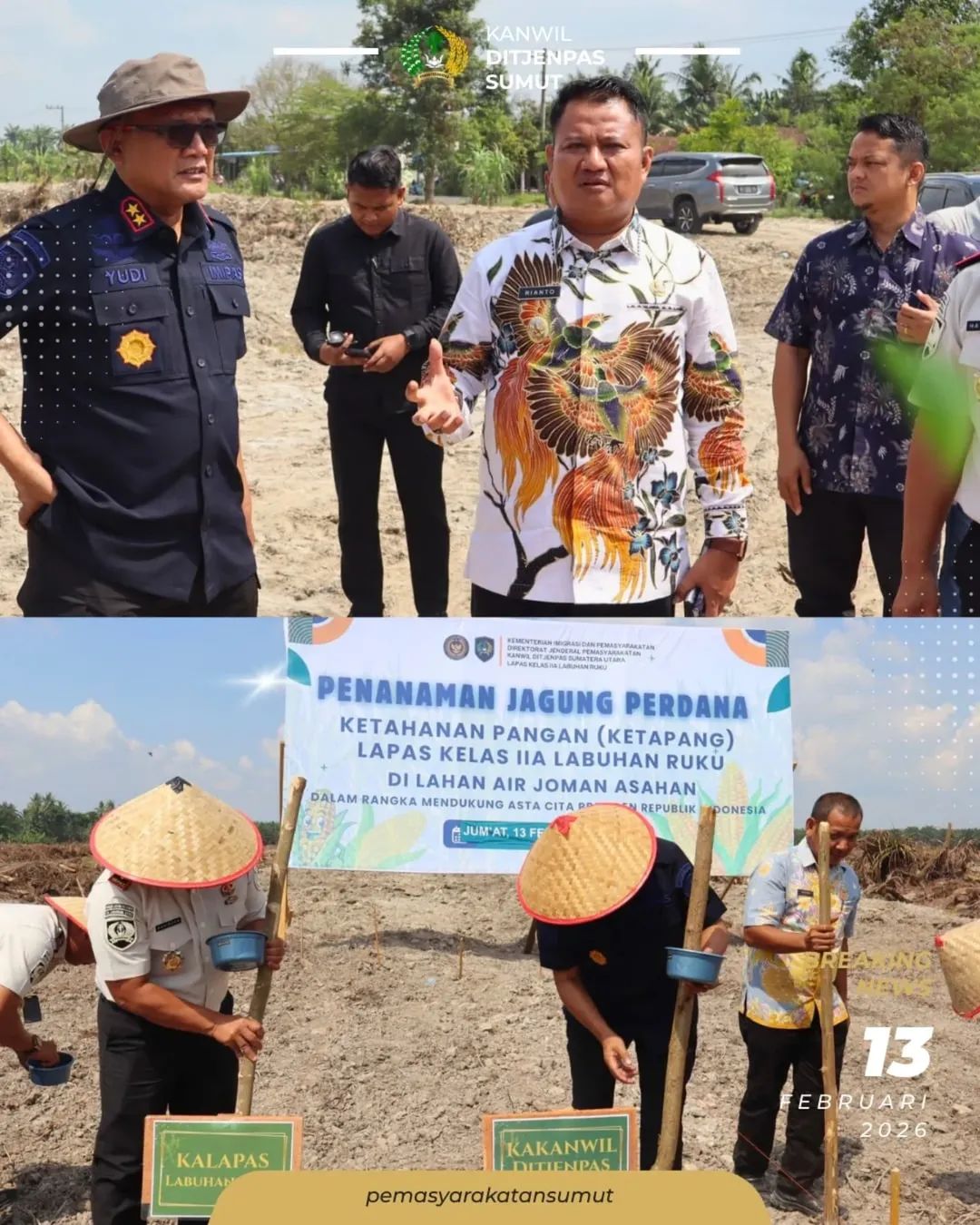 Batubara, mediatransparancy.com — Kantor Wilayah Direktorat Jenderal Pemasyarakatan Sumatera Utara menunjukkan komitmen nyata dalam mendukung program ketahanan pangan nasional melalui pelaksanaan penanaman jagung perdana di Lahan Air Joman, Kabupaten Asahan, Jumat, 13 Februari 2026.