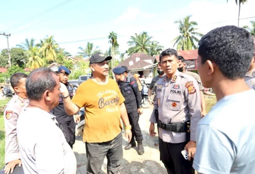 Didampingi Bupati Aceh Tamiang Armia Pahmi dan Kapolres AKBP Muliadi, Kapolda menyampaikan keprihatinannya atas lumpuhnya aktivitas masyarakat dan pemerintahan akibat banjir yang melanda sekitar 90 persen wilayah Tamiang.