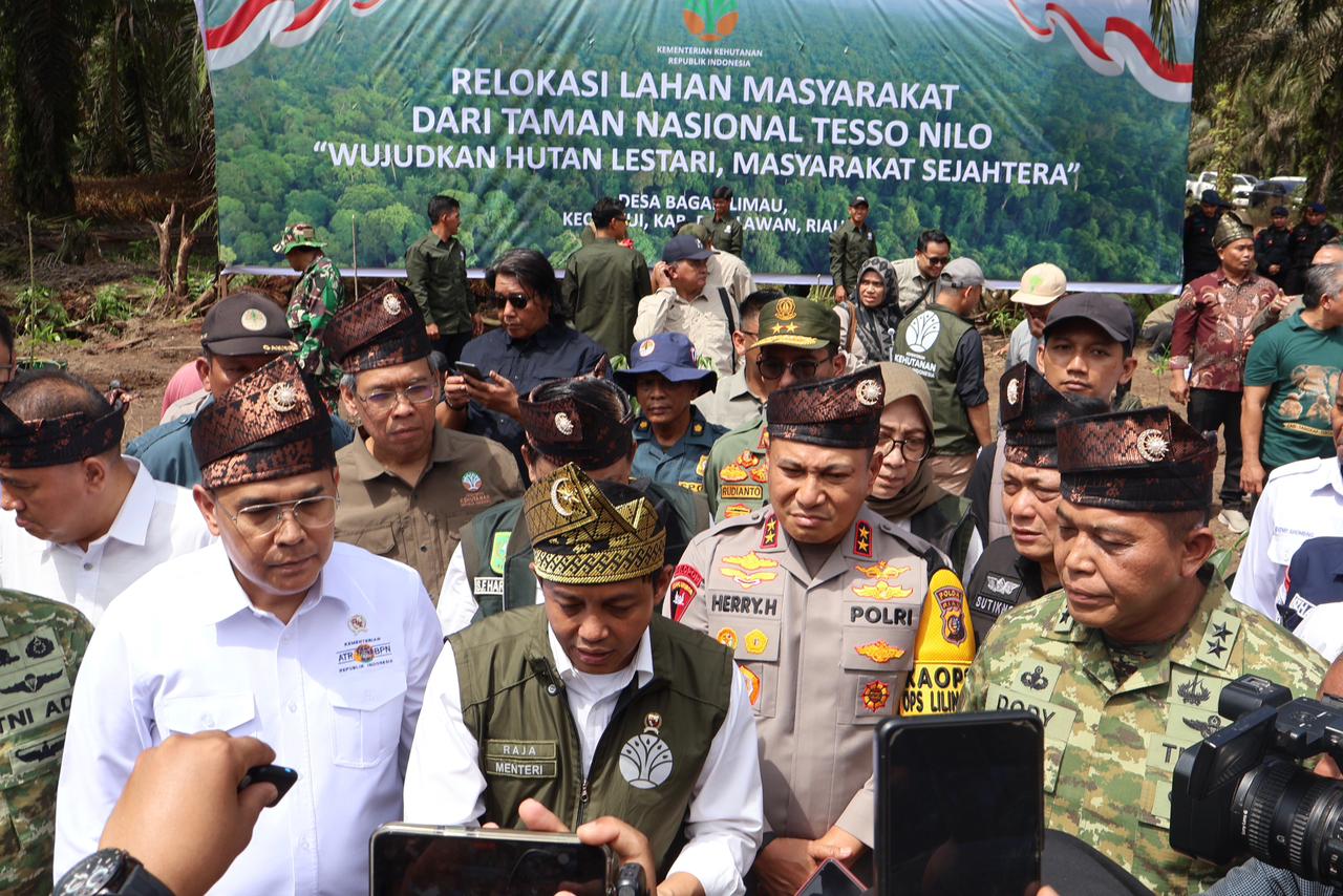 Sementara itu, Pelaksana Tugas Gubernur Riau SF Hariyanto menyampaikan bahwa relokasi dan pemulihan kawasan TNTN bukan sekadar kegiatan seremonial, melainkan wujud komitmen bersama untuk memulihkan kawasan strategis nasional berbasis data dan keadilan. Ia menekankan pentingnya sinergi antara pemerintah pusat, pemerintah daerah, dan aparat penegak hukum agar relokasi tuntas dan pemulihan ekosistem berjalan berkelanjutan.