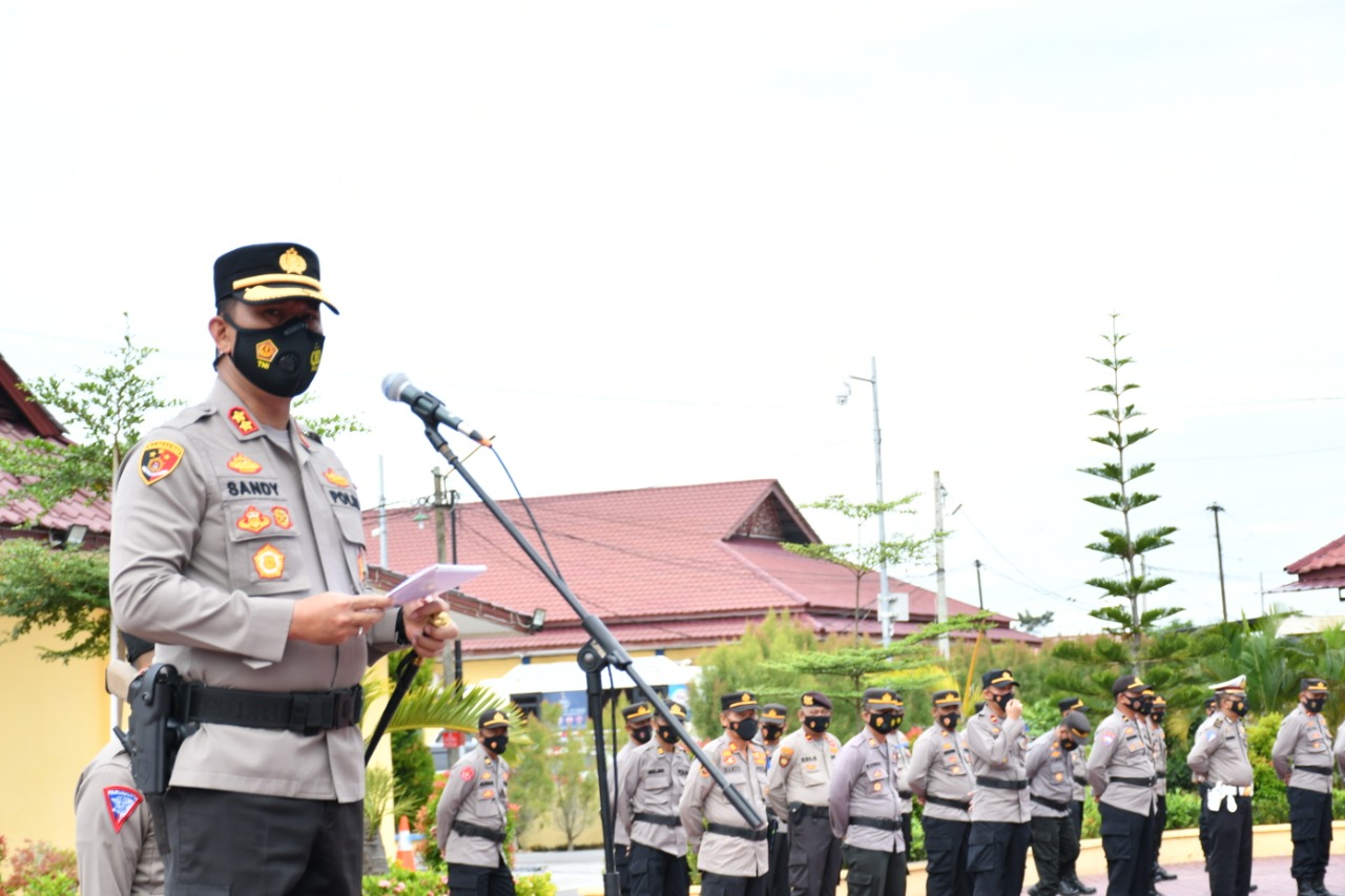 Bertindak Sebagai Inspektur Upacara Kapolres Aceh Timur AKBP Mahmun Hari Sandy Sinurat, S.I.K. yang dihadiri Wakapolres Kompol Chairul Ikhsan, S.I.K, para Kabag, Kasat, Perwira staf dan para kapolsek jajaran .