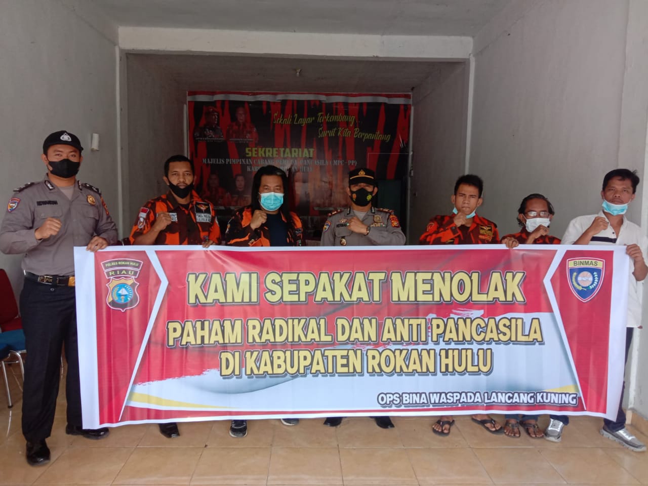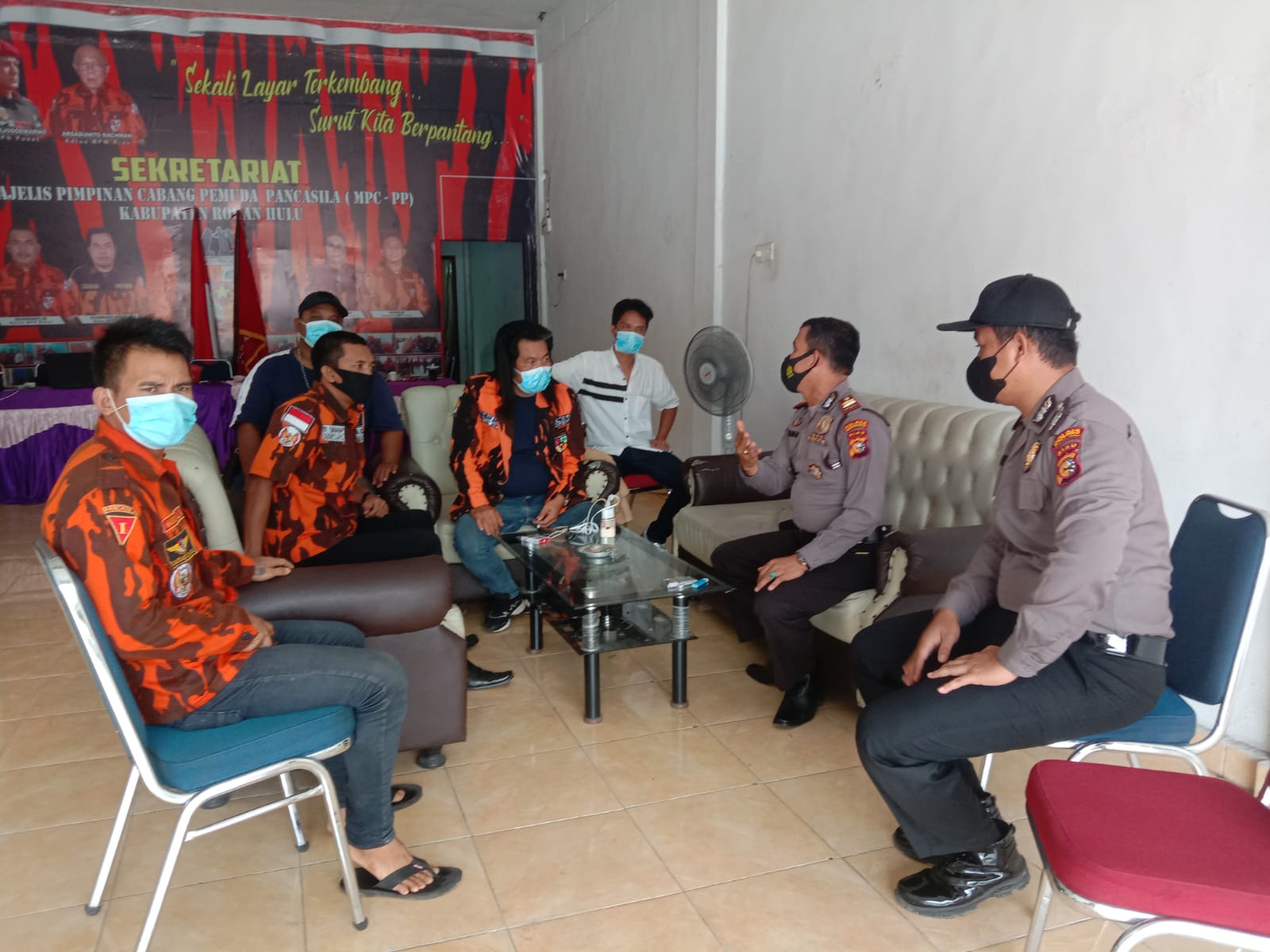 MEDIA TANSPARANCY,ROKAN HULU -Personil Satuan Pembianaan Masyarakat (Binmas), Polres Rokan Hulu (Rohul) yang dipimpin AKP Hermawan operasi bina waspada Satuan Tugas Pembinaan dan Penyuluhan (Satgas-Binluh), di Kantor Majelis Pimpinan Cabang (MPC) Pemuda Pancasila (PP) Rohul, Senin (23/8/2021).