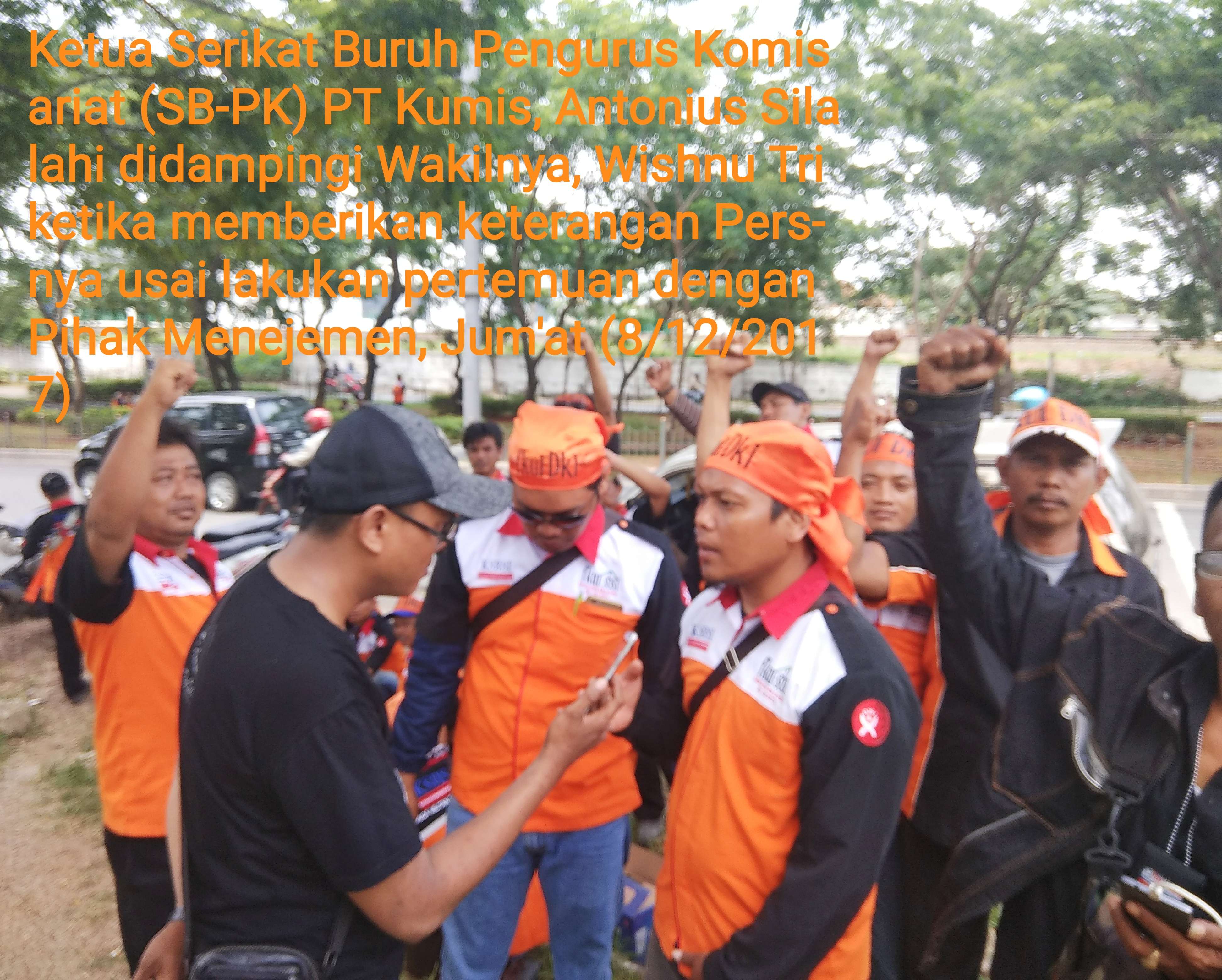 Demikian yang dikatakan Antonius Silalahi ketika memberikan keterangan pers-nya saat usai lakukan perundingan terkait tuntutan mogok kerja serta menyuarakan tuntutan para karyawan PT Kumis dan bahwa hasil dari pertemuan mediasi yang di prakarsai Suku Dinas (Sudin) Tenaga Kerja tersebut tidak ada titik temu alias Deadlock, karena tidak dihadiri pengambil keputusan, yakni Pimpinan Perusahaan, pak Didi. Perundingan terjadi disela-sela aksi yang digelar dijalan Terusan I, Gusti Ngurah Rai Nomor 9, Pondok Kopi Jakarta Timur, Prov. DKI Jakarta pada, Jum’at (8/12/2017)