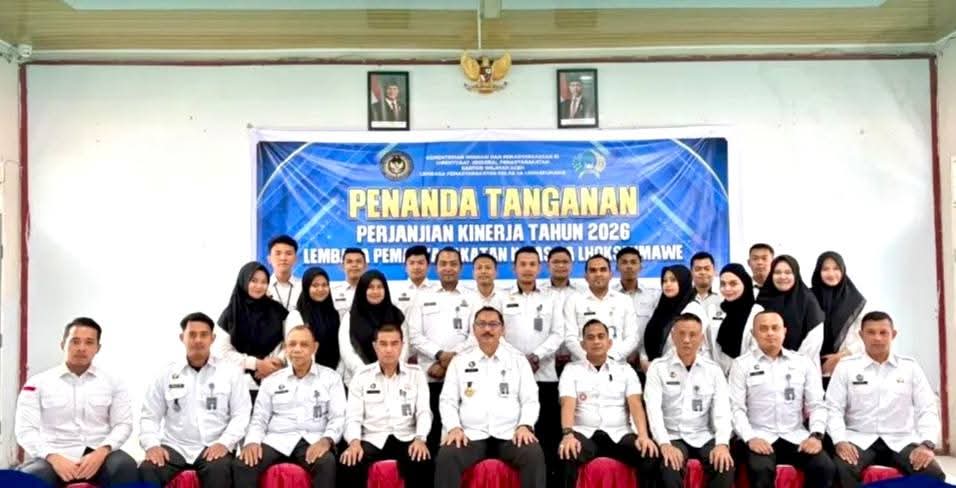 LHOKSEUMAWE, TRANSPARANSI – Lembaga Pemasyarakatan (Lapas) Kelas IIA Lhokseumawe, KanwIl Ditjenpas Aceh melaksanakan kegiatan Penandatanganan Perjanjian Kinerja Pegawai Tahun 2026 sebagai bentuk komitmen bersama dalam meningkatkan kinerja, integritas, serta akuntabilitas pelaksanaan tugas dan fungsi pemasyarakatan, Jum’at, 9 Januari 2026.