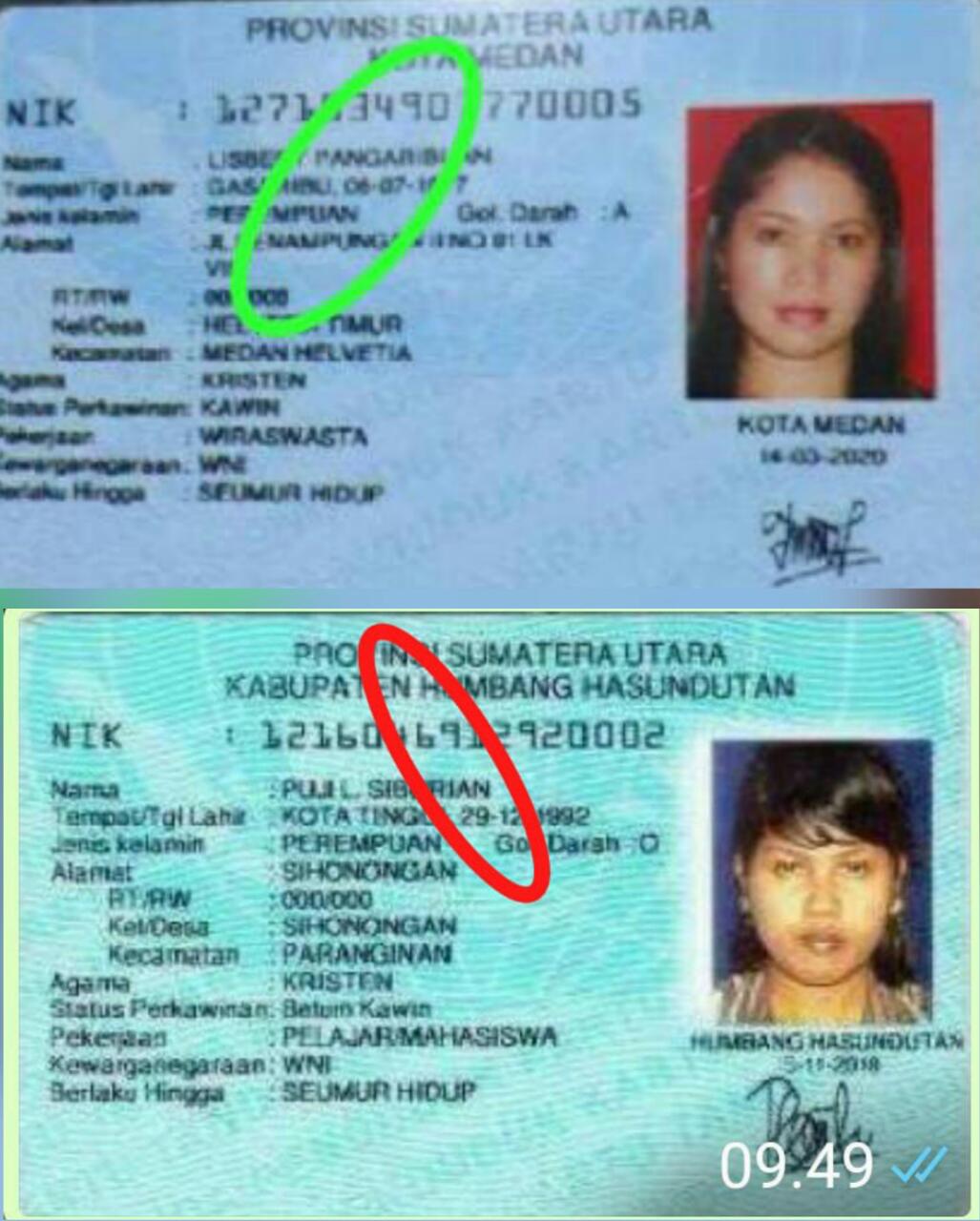 Jika tanggal lahir Lisbet Pangaribuan sesuai KTP tercatat tanggal 06, pada nomor KTP seharusnya tercatat 46, bukan 49.