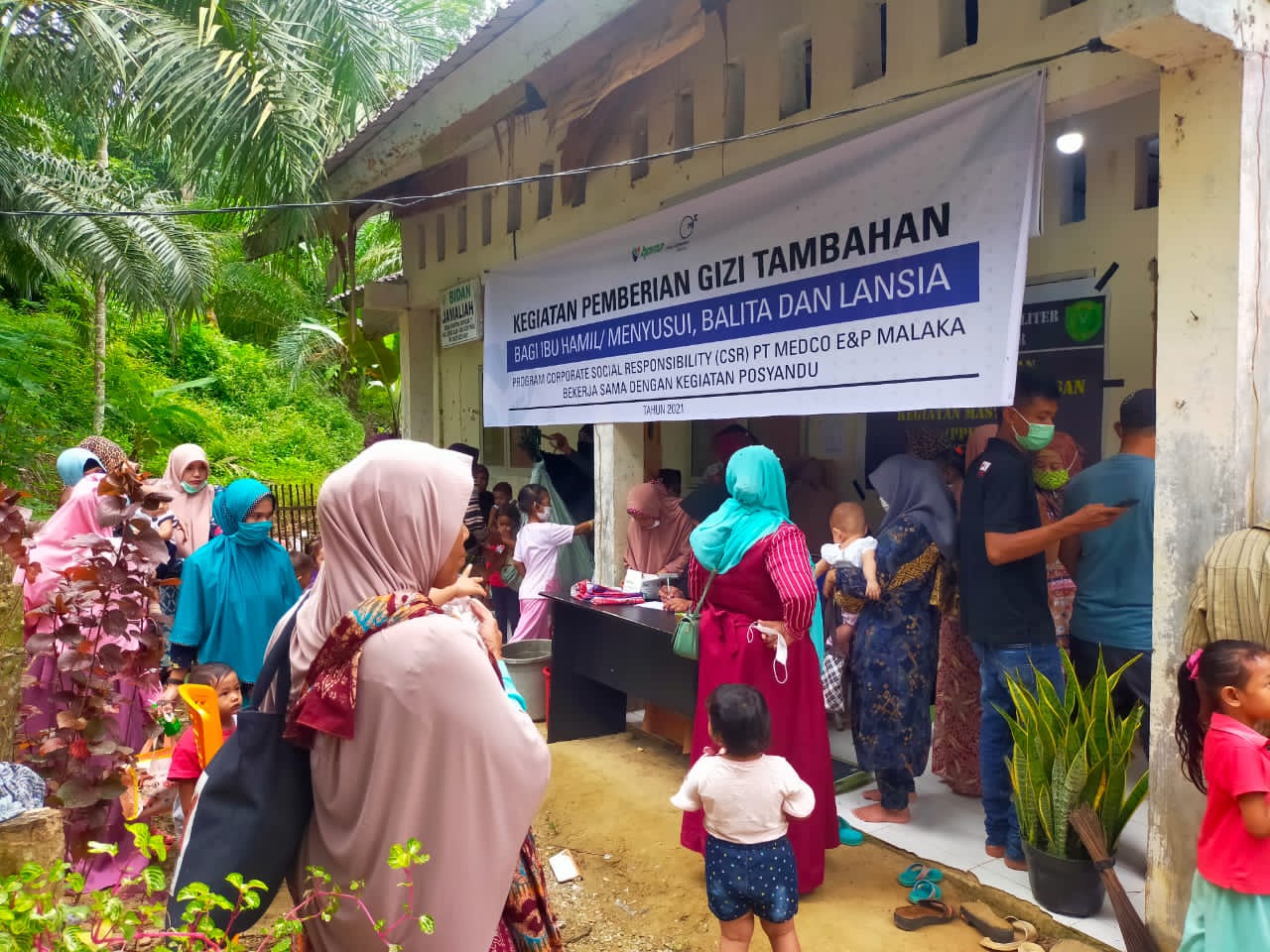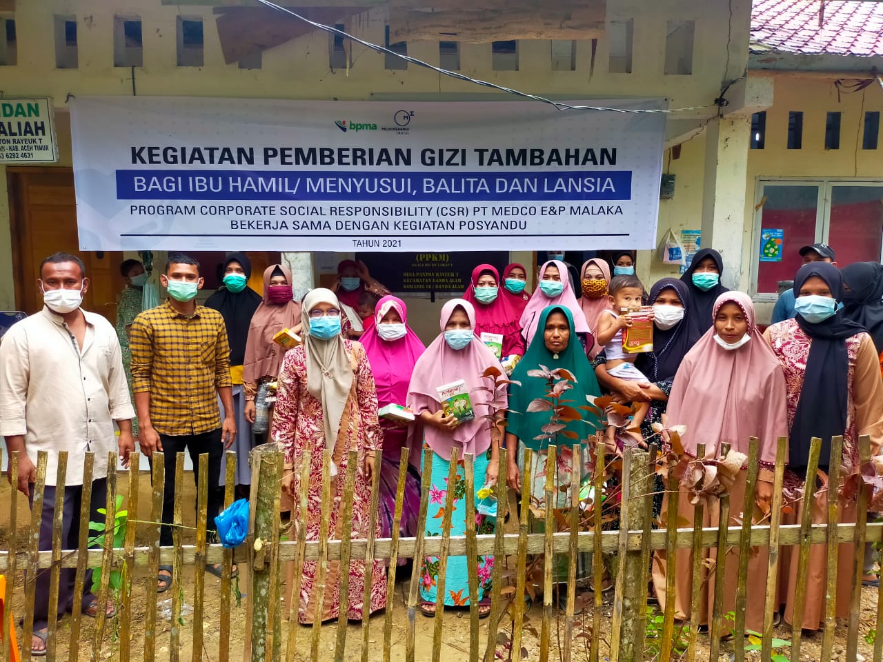 ACEH TIMUR, MEDIA TRANSPARANCY – PT Medco E&P Malaka (Medco E&P) terus memperhatikan kualitas gizi masyarakat di sekitar wilayah operasi. Untuk itu, Perusahaan kembali melaksanakan kegiatan Pemberian Gizi Tambahan bagi Ibu Hamil, Menyusui, Balita dan Lansia di Desa Pantuen Rayeuk T, Kecamatan Banda Alam, Aceh Timur, pada Kamis (10/06/2021).