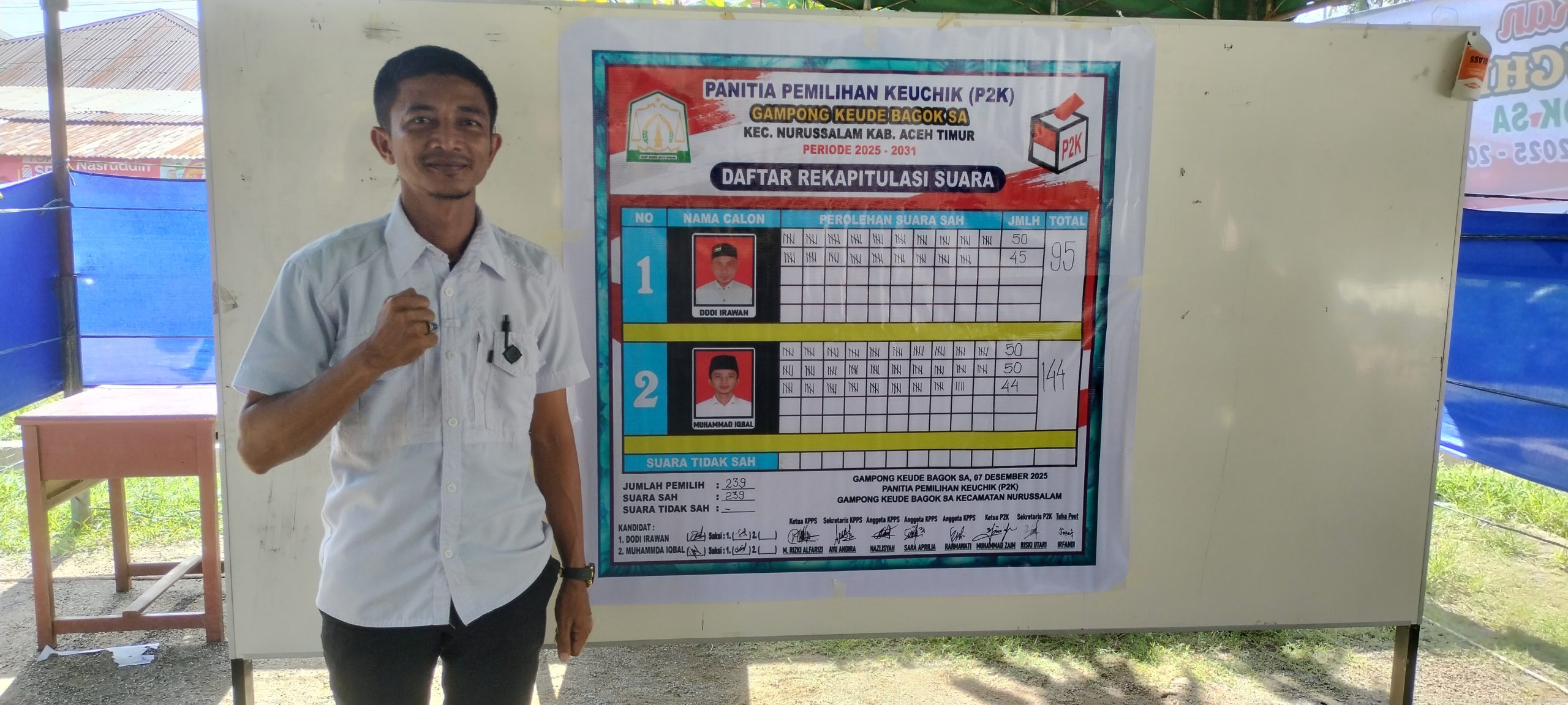 Transparancy Aceh Timur – Muhammada Iqbal nomor urut 2 terpilih sebagai keuchik Gampong Keude Bagok Sa kecamatan Nurussalam Kabupaten Aceh Timur.