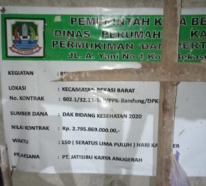 KOTA BEKASI, MEDIATRANSPARANCY.COM – Proyek rehab atau renovasi Laboratorium Kesehatan Daerah (LABKESDA) Kota Bekasi tidak sesuai jadwal dalam pelaksanaan pengerjaannya. Dengan target penyelesaian pekerjaan selama 150 hari kalender. ‘Molornya’ progress pekerjaan dan pelaksanaan dilapangan apakah terkendala perencanaan atau hal lainnya.