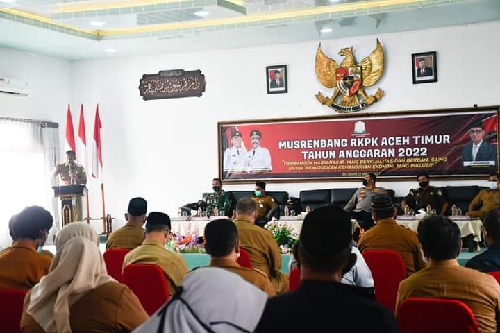 “Melaui forum ini, kami instruksikan kepada semua kepala OKP dalam Pemerintah Kabupaten Aceh Timur, untuk dapat memprioritaskan usulan program/kegiatan hasil pelaksanaan Musrenbang di Kecamatan dan Kabupaten, serta mengintegrasikan pokok-pokok pikiran anggota DPRK, dengan tetap memperhatikan pencapaian prioritas pembangunan daerah, dan mensinergikan dengan pencapaian prioritas nasional dan provinsi, dengan memanfaatkan seluruh sumber pembiayaan yang ada termasuk pemanfaatan dana Gampong dan dana CSR,” harap Bupati Aceh Timur Rocky.