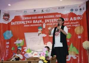 Dengan mengangkat tema “Internetku Baik, Internetku Asyik!”, kegiatan Seminar Hari Anak Nasional 2018 yang digelar KemenPPPA ini diisi berbagai agenda seperti Art Performance, seminar, dan talkshow. Uniknya dalam kegiatan ini, selain sebagai peserta, anak-anak dilibatkan mengisi kepanitiaan, menjadi pembicara kunci, dan penampil. Dan kegiatan ini merupakan rangkaian dari kegiatan Internet Aman untuk Anak (Tem@an Anak) yang telah dilaksanakan pada Februari 2018 lalu.