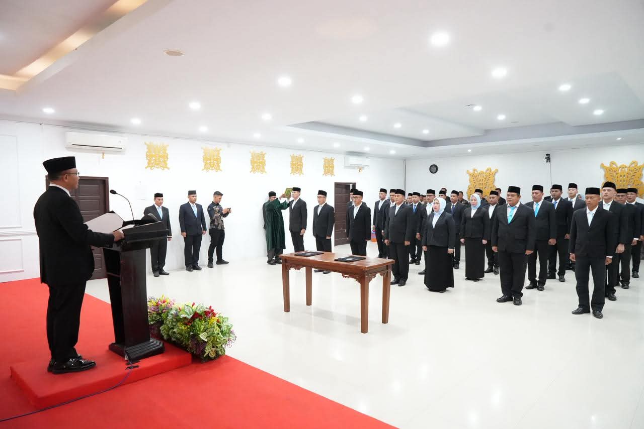 BANDA ACEH Transparansi – Kantor Wilayah Direktorat Jenderal Pemasyarakatan (Kanwil Ditjenpas) Aceh telah menyelenggarakan acara pelantikan dan pengambilan sumpah jabatan bagi 26 orang pejabat manajerial di lingkungannya, Jum’at, 03 Oktober 2025. Kegiatan ini merupakan tindak lanjut dari Keputusan Menteri Imigrasi dan Pemasyarakatan RI dalam upaya penguatan dan peningkatan kinerja organisasi Pemasyarakatan di Aceh.
