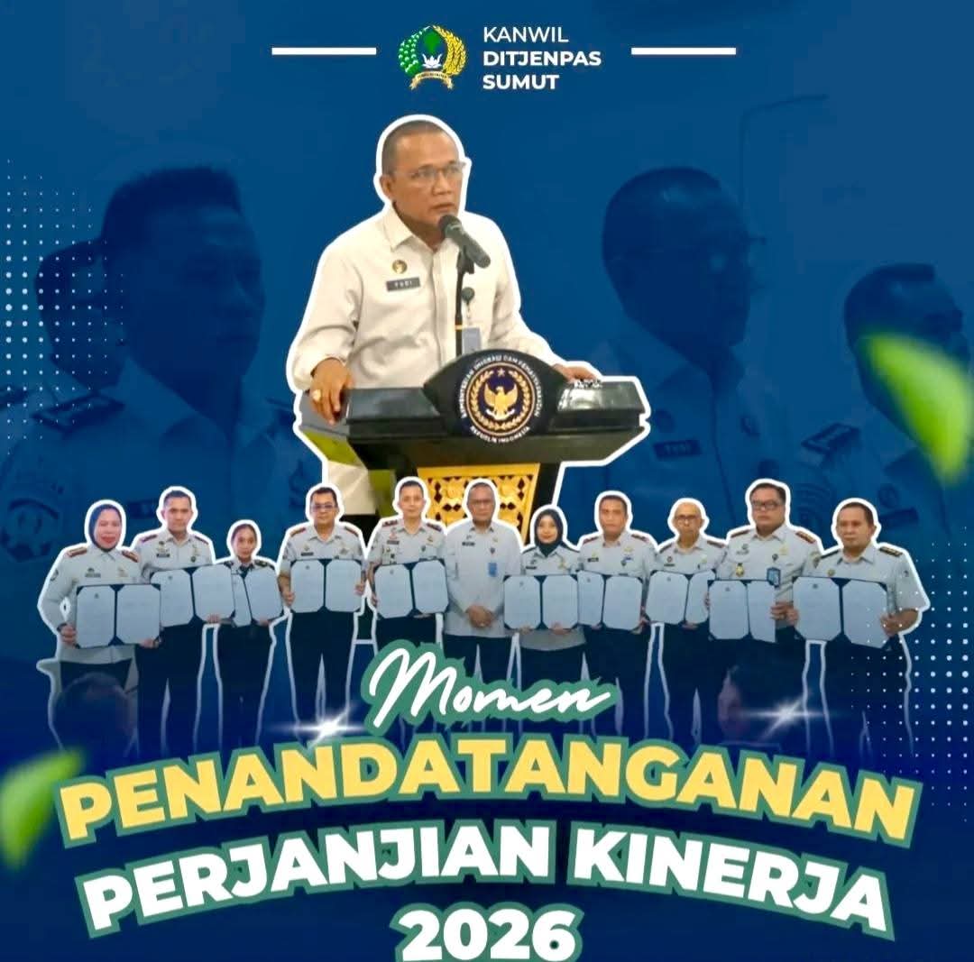 Melalui penandatanganan Perjanjian Kinerja Tahun 2026 ini, Kanwil Ditjenpas Sumatera Utara meneguhkan komitmennya untuk terus meningkatkan kinerja organisasi, mendukung pencapaian target Direktorat Jenderal Pemasyarakatan Sumatera Utara, serta berkontribusi aktif