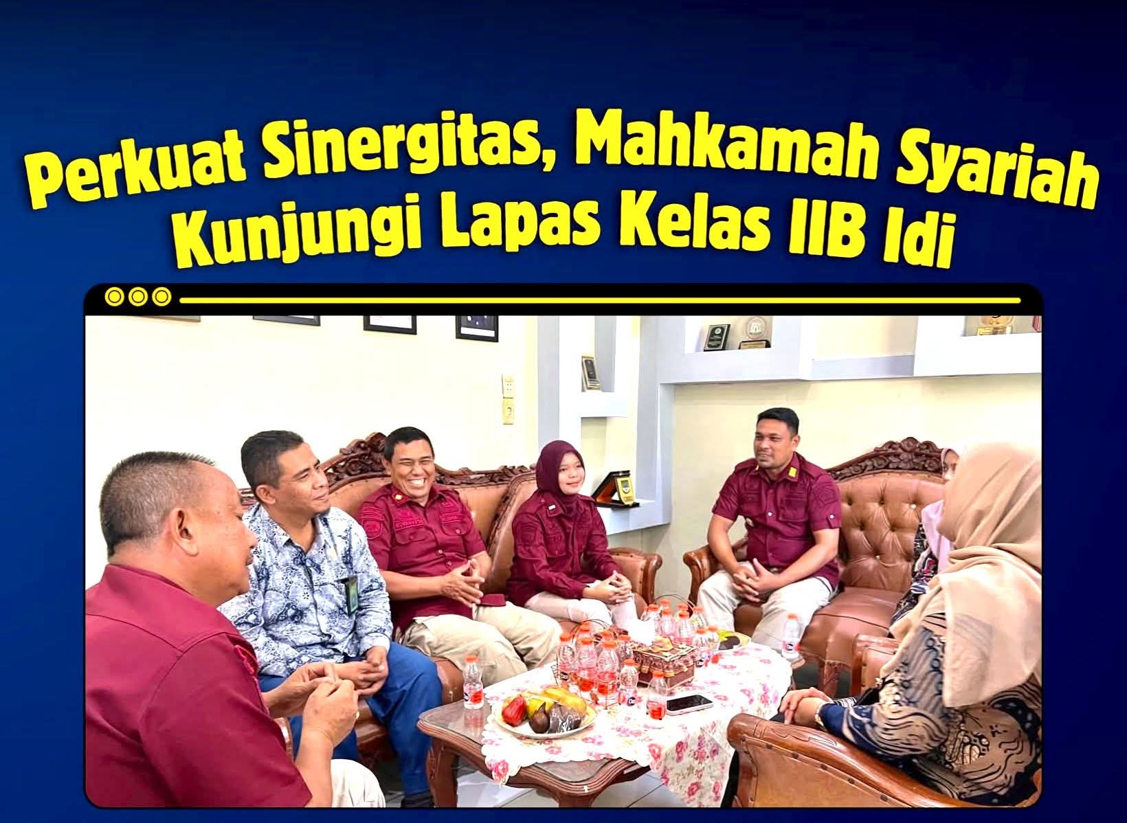 TRANSPARANSI, ACEH TIMUR – Lembaga Pemasyarakatan Kelas IIB Idi menerima kunjungan dari Mahkamah Syariah Idi yang dipimpin langsung oleh Ketua Mahkamah Syariah Idi, Wafa’, S.H.I., M.H. beserta Rombongan. Kunjungan ini dilaksanakan sebagai bentuk silaturahmi sekaligus membangun koordinasi dan komunikasi kelembagaan antara aparatur peradilan agama dengan institusi pemasyarakatan. Kamis, (31/07).