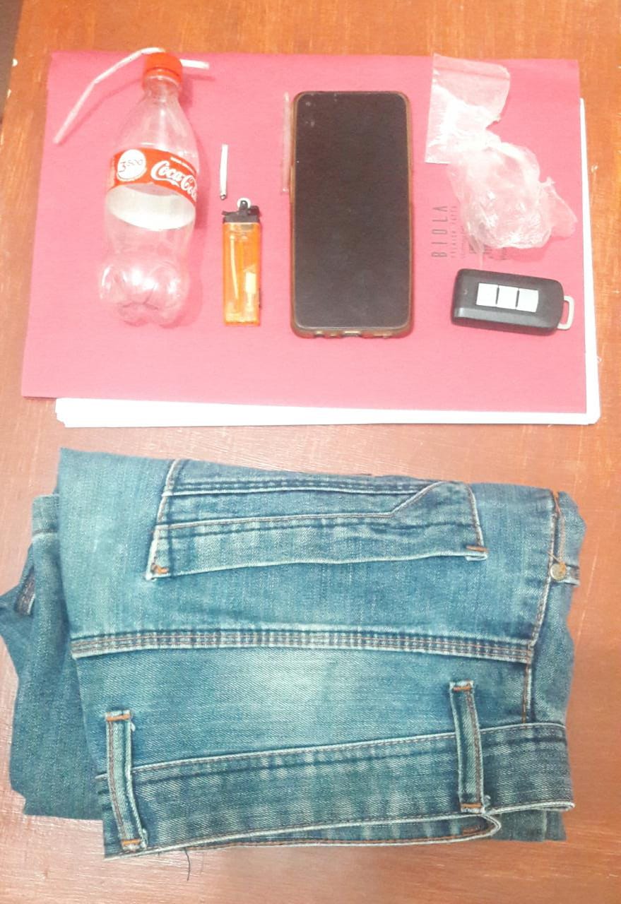 Pada saat pintu mobil dibuka, Personil Polri melihat ada 1 buah Kompor (Korek Api/ Mancis dan sumbu berupa kertas timah rokok yang digulung kecil) dan 1 buah kaca pirek yang terdapat sisa serbuk putih yang melekat pada kaca Pirek, diduga kedua alat tersebut digunakan untuk mengkonsumsi Narkotika jenis Sabu.