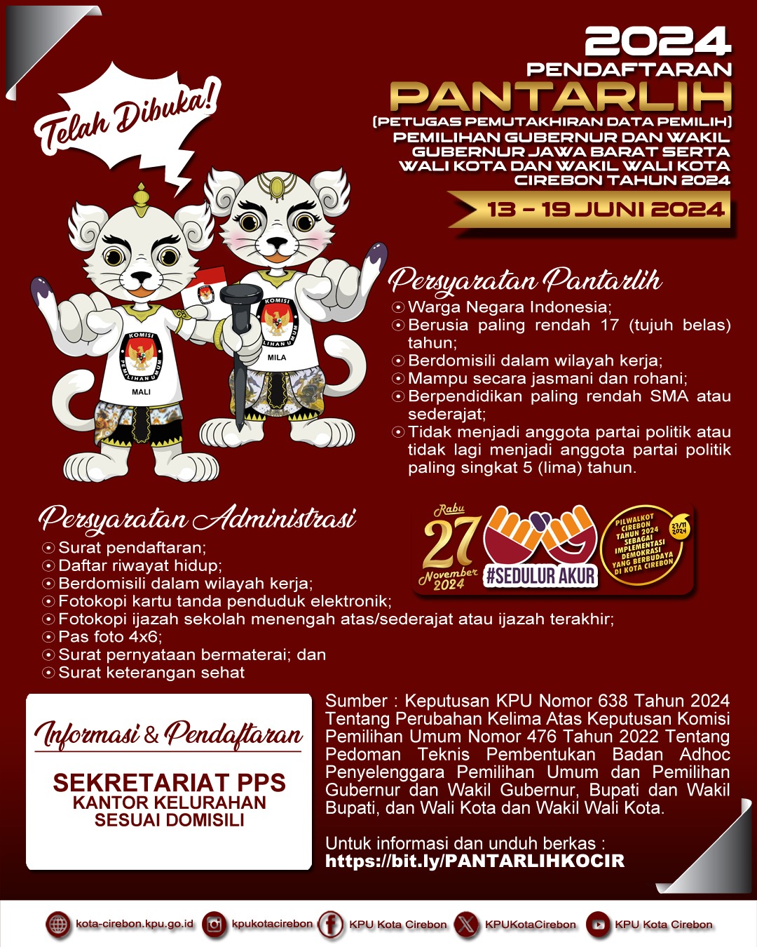 CIREBON, MediaTransparancy.com – Saat ini KPU Kota Cirebon melalui PPS (panitia pemilihan suara) di masing-masing kelurahan sedang melakukan pendaftaran calon Petugas Pemutakhiran Data Pemilih (PPDP) yang mulai dilaksanakan mulai tanggal 13-19 Juni 2024.